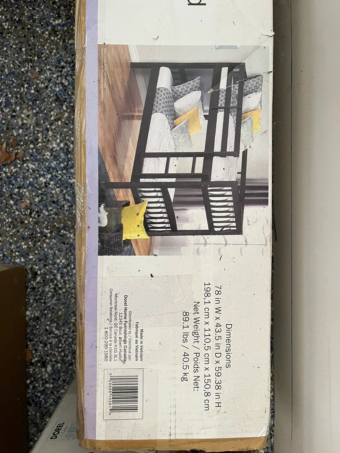 New in the box, unopened. Dimensions: 78 in W x 45.5 in D x 59.38 in H. Net Weight: 88 lbs.