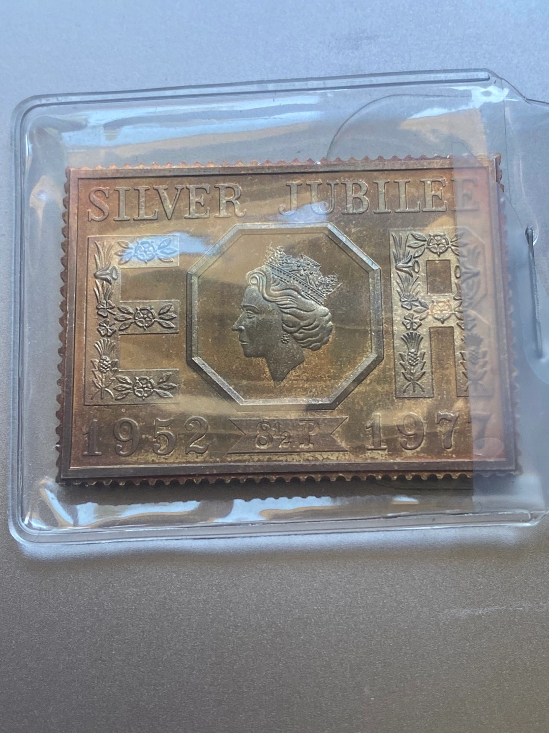 QE 2 25th Anniversary Silver Metal Stamp π