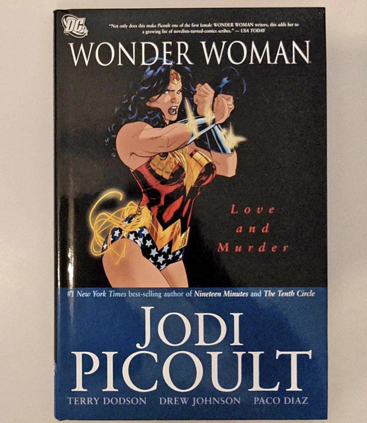 735Graphic novel written by Jodi Picoult, with art by Terry Dodson, Drew Johnson and Paco Diaz. #1 New York Times best-selling author of Nineteen Minutes and The Tenth Circle. DC comics comic book. Wonder Woman. Hard Cover. "Wonder Woman, in her disguise as Diana Prince, a special agent of the Department of Metahuman Affairs, takes on an assignment to track down Wonder Woman, an impossible task that risks revealing her secret identity." "Jodi Picoult is the #1 New York Times bestselling author of twenty-nine novels, including Mad Honey, Wish You Were Here, The Book of Two Ways, A Spark of Light, Small Great Things, Leaving Time, and My Sister's Keeper, and, with daughter Samantha van Leer, two young adult novels, Between the Lines and Off the Page. Picoult lives in New Hampshire."