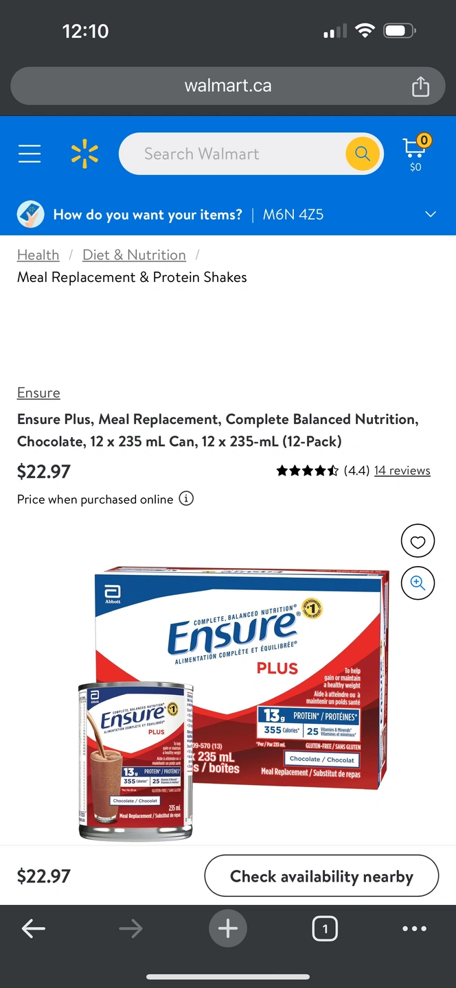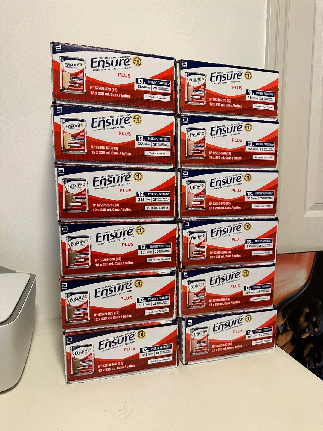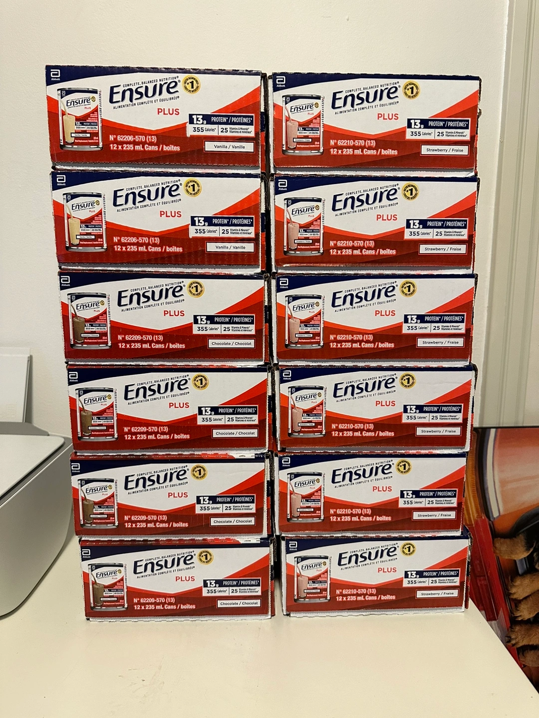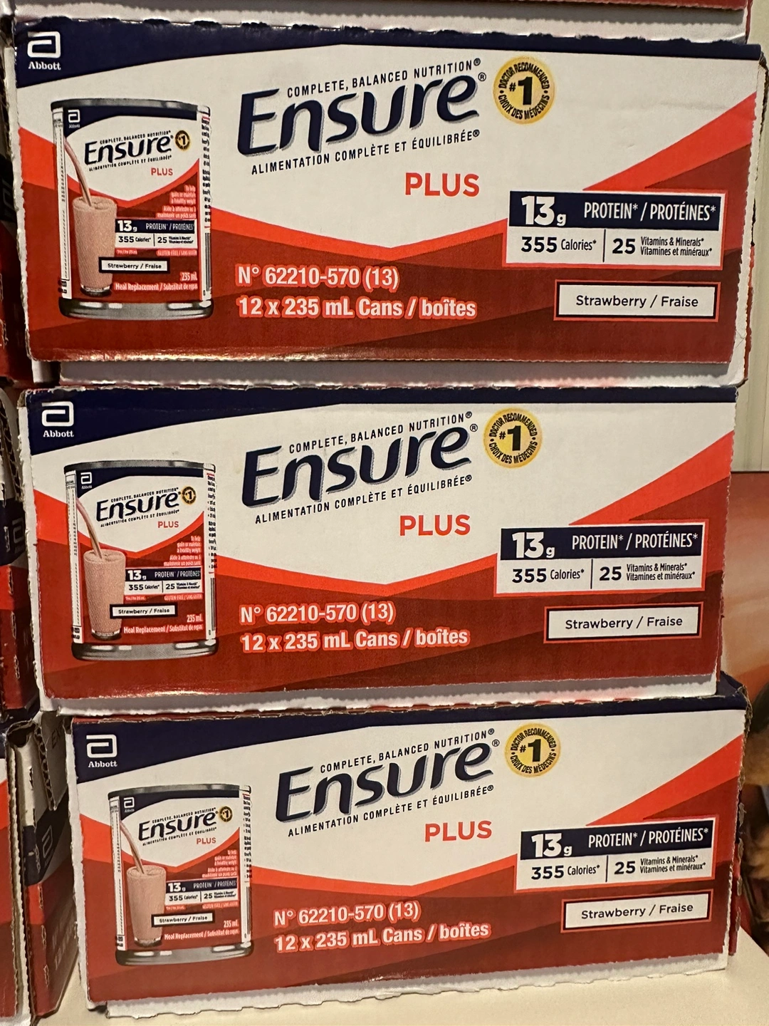 I’m selling 12 cases of Ensure Plus cans.
