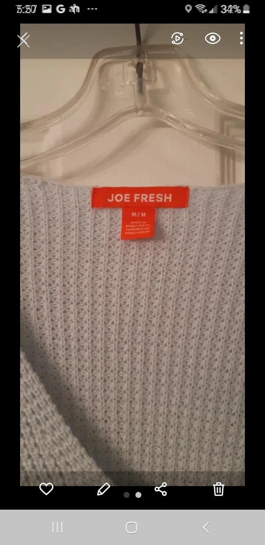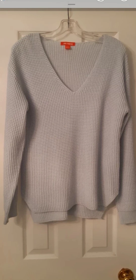 828Pale blue waffle knit sweater with long sleeves and v-neck 100% acrylic, machine washable Good condition, no stains or rips