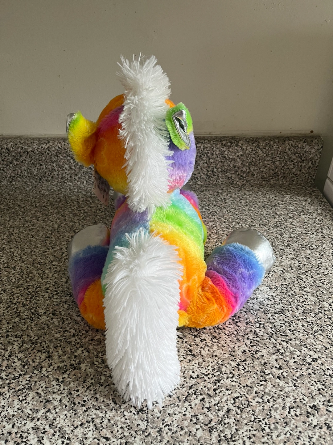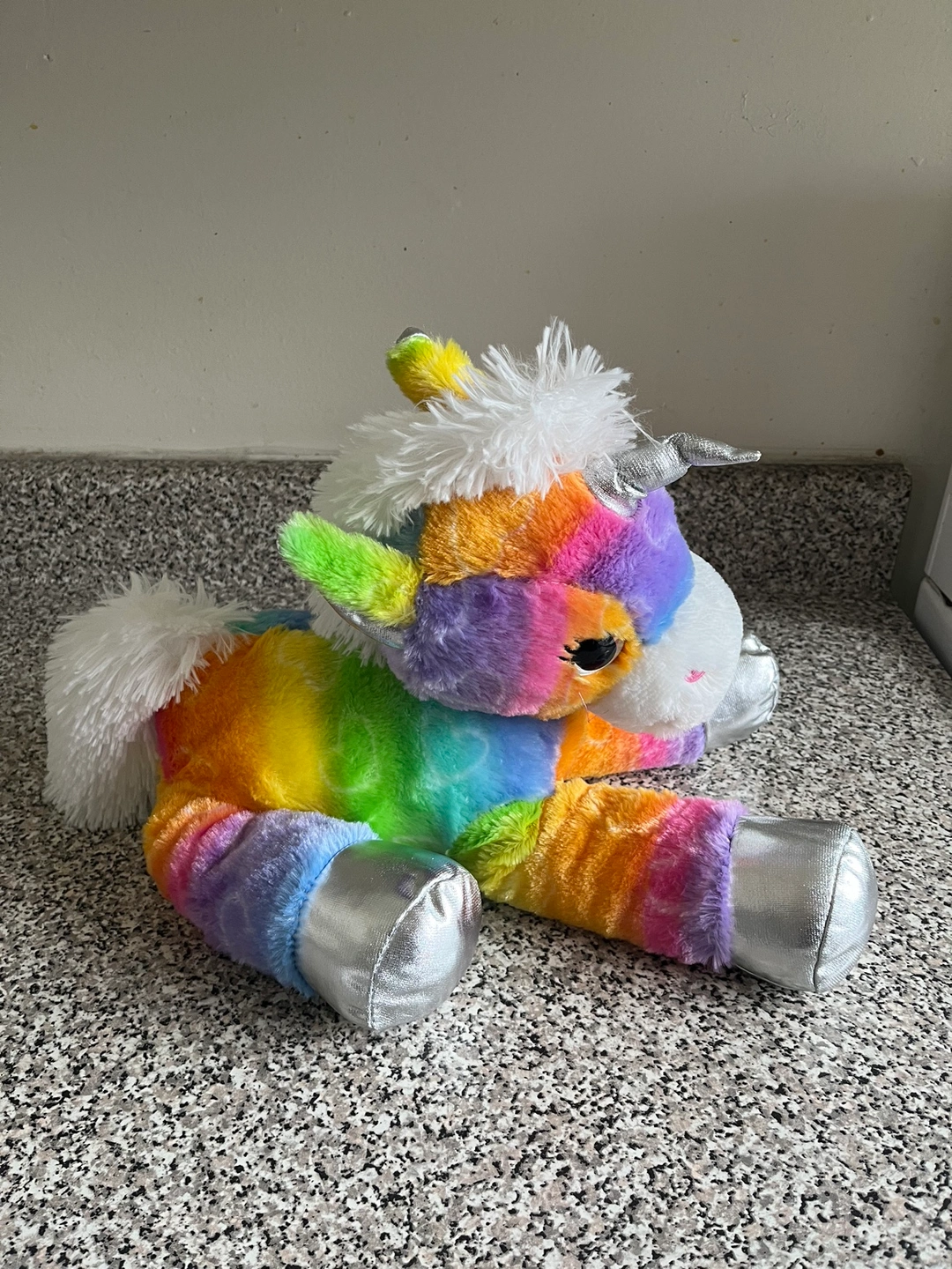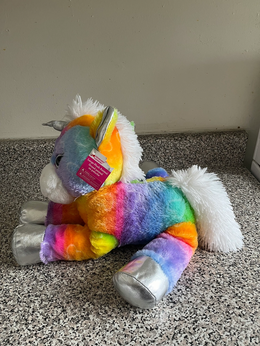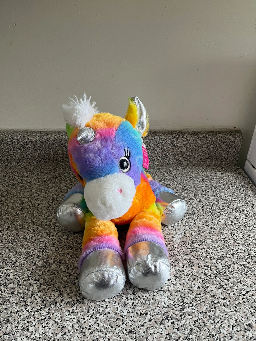 Large plush unicorn with silver accents and a rainbow pattern. For $5.00 Pick up only I don’t hold it. First come first serve