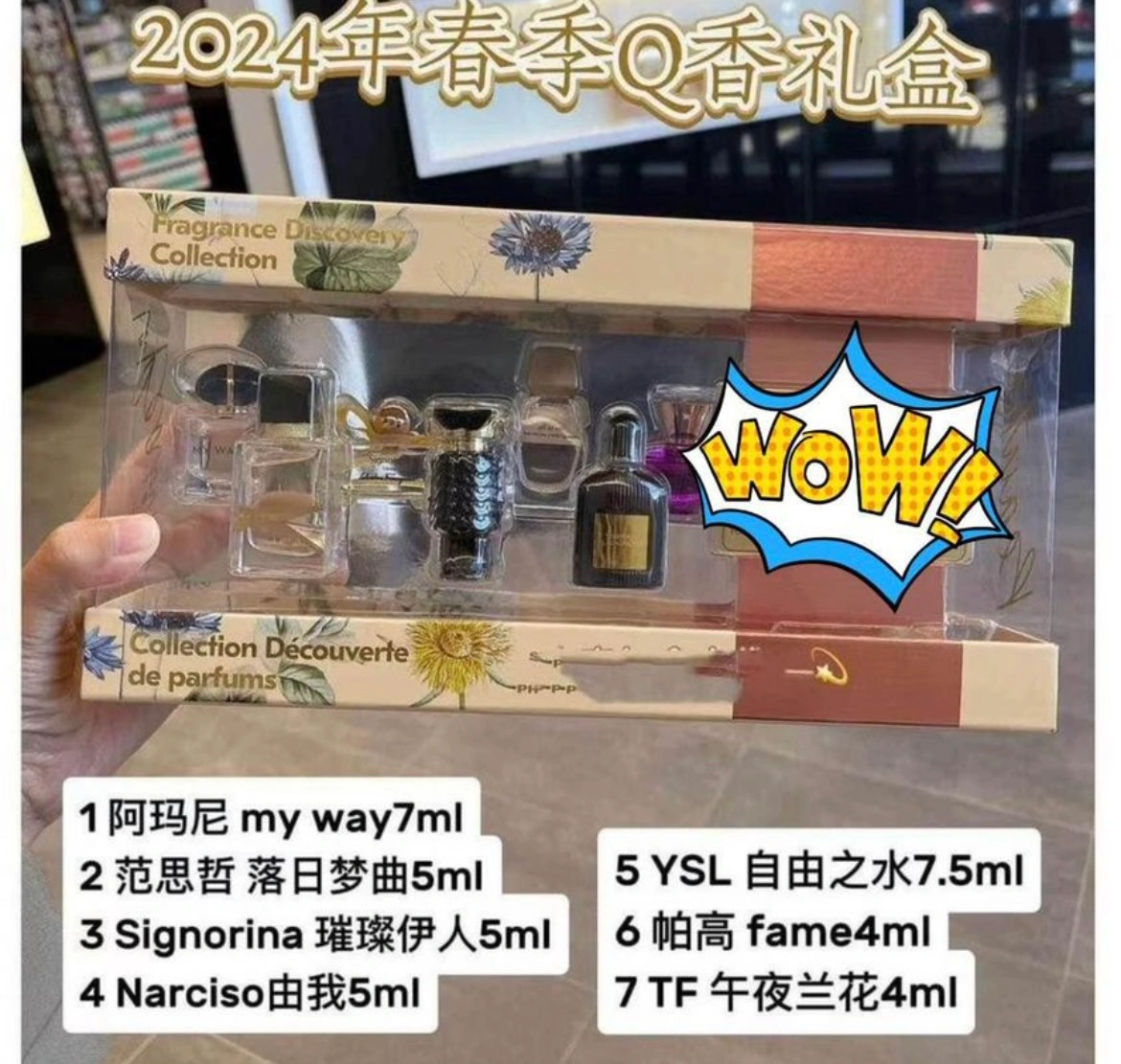 137Set of seven different perfumes in travel sizes.Total 37.5ml . Price is firm .PU:660 Nootka way, port moody . It is a nice set . Good for a gift as well .