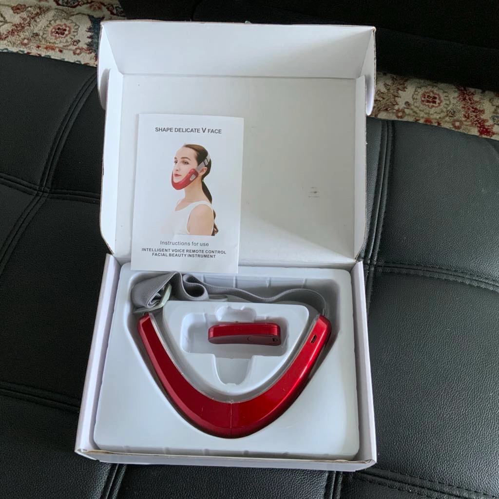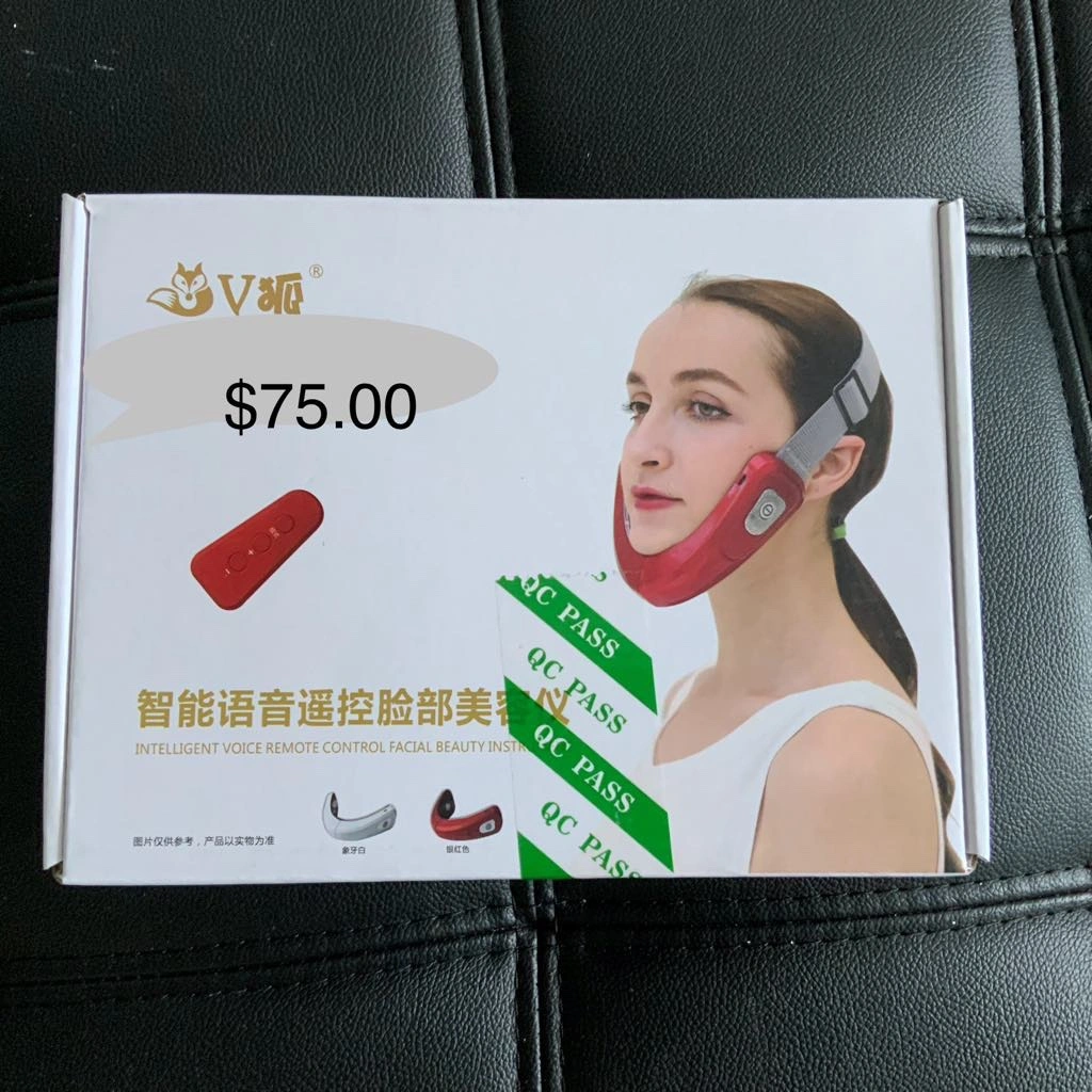 This is a V face shaping device that is designed to help you achieve a more defined jawline and a more sculpted look. The device is easy to use and can be worn comfortably for extended periods of time. It comes with a remote control that allows you to adjust the intensity of the vibrations to suit your needs.