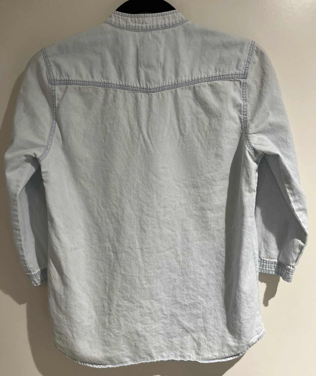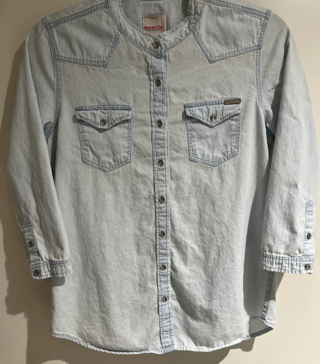This women’s shirt, made from 100% cotton, features 3/4 sleeves and includes two extra buttons.