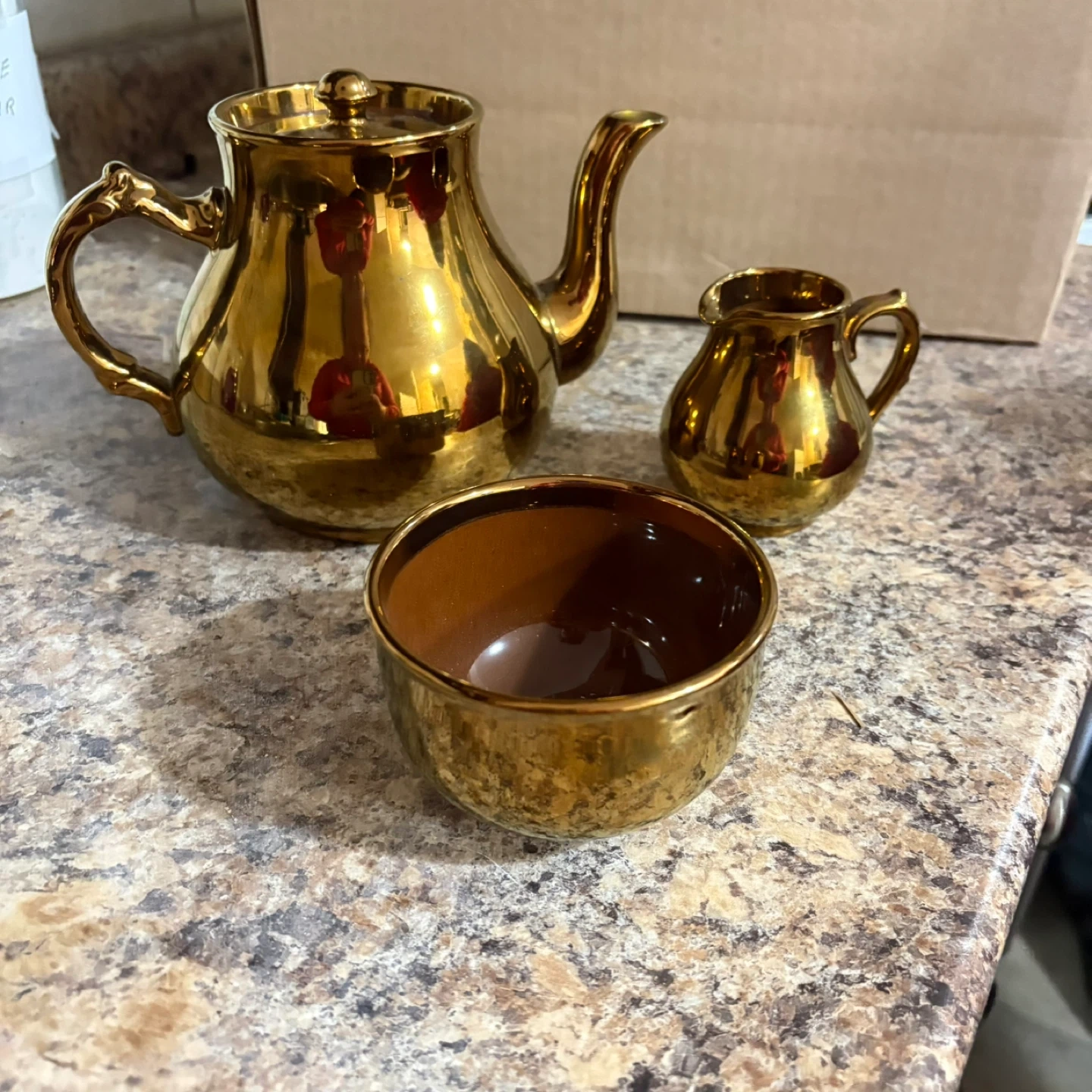 Gold Tone Teapot, Creamer, and Sugar Bowl Set