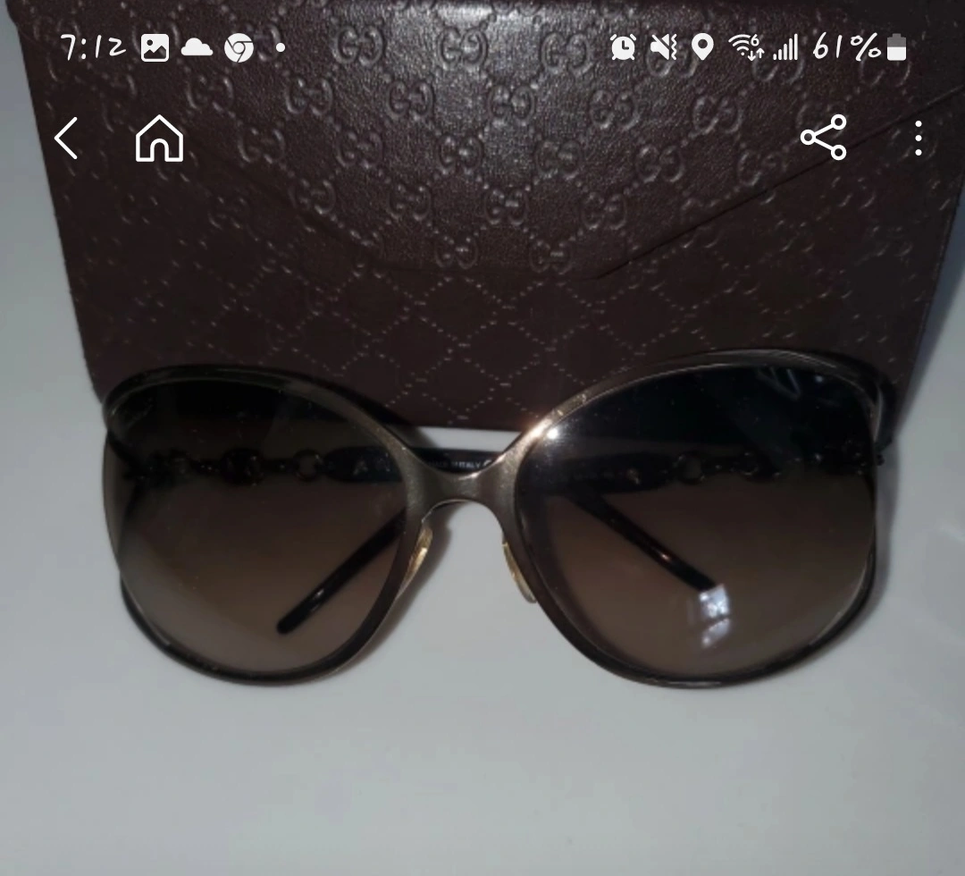 36Gucci sunglasses with a gold frame and brown lenses. Comes with a case.womens