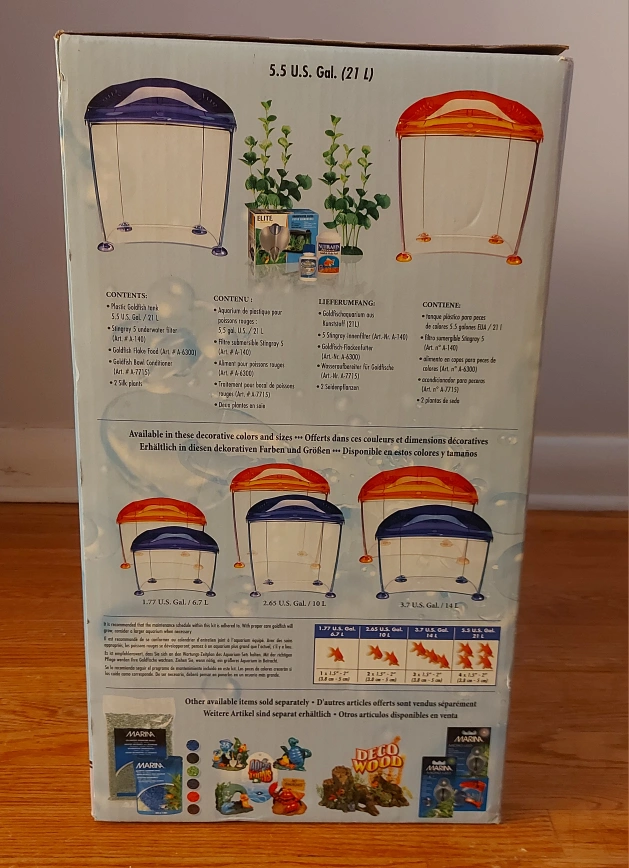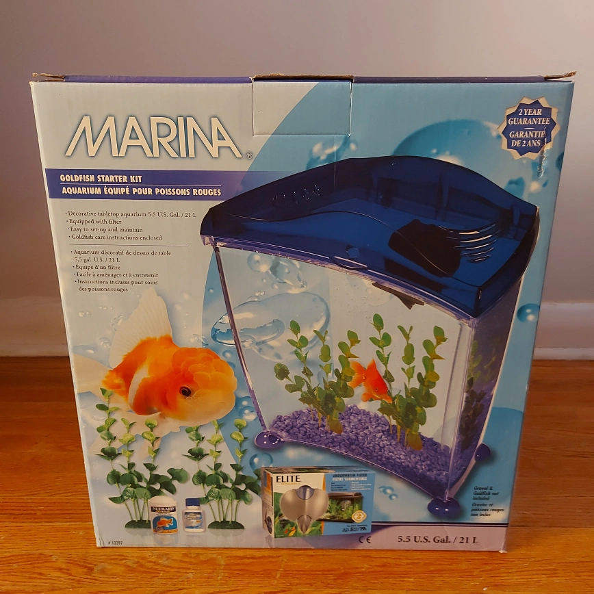 1000+* Discover More Great Deals in My Other Listings! NEW and Unused: Marina 5.5 Gallon Starter Kit in original packaging! This starter kit comes with everything you need to get started with your first Goldfish, Betta, shrimps or other small fish. It includes a 5.5 gallon aquarium, a filter, a water conditioner, fish food, and a decorative plant. --- Special Offer: Bundle with other items from my listings for great discounts. Pickup Only: Item available if listing is visible. Delivery is not available.