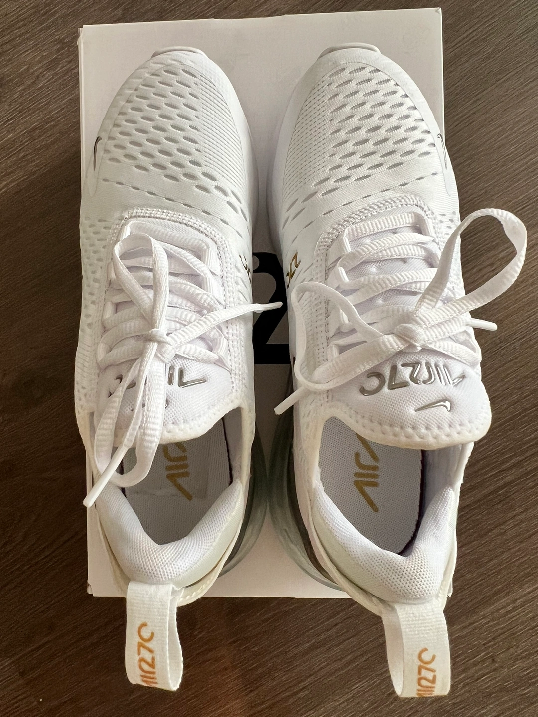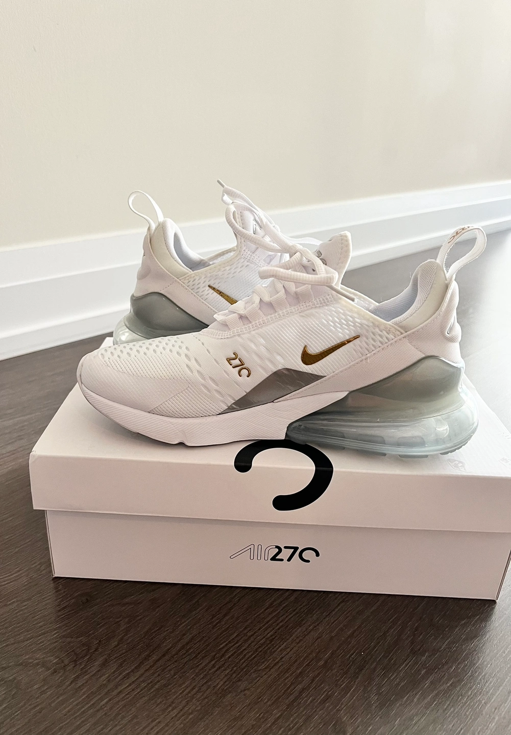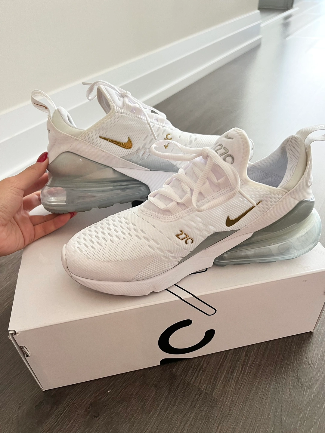 The Nike Air Max 270 White Metallic Gold (Women's) was one of the many women's-exclusive Air Max 270 colorways put out into the world.