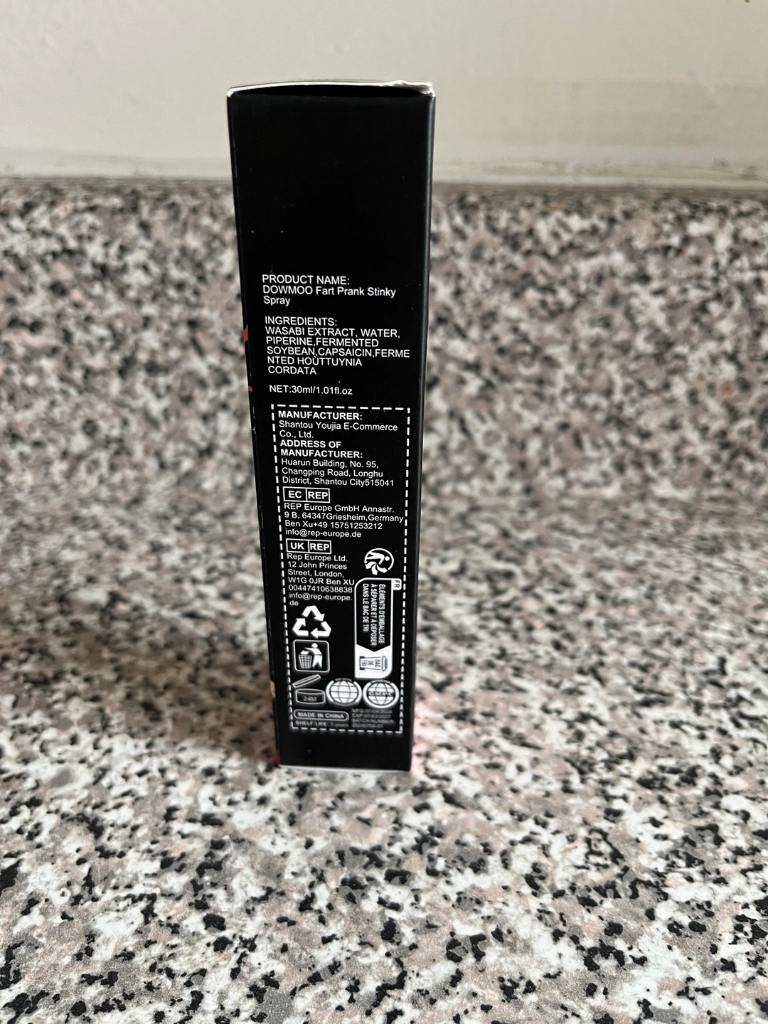 A prank spray that is said to smell like a fart. The product states that it is easy to conceal and has a long-lasting smell. The product is 30ml or 1.01 fl oz. It is manufactured in China. The bottle has a bright orange and black design. I don’t think the smell last a long time. It’s use because I try it before and I don’t want it so if anyone is interested let me know Pick up only 🆓 First come first serve