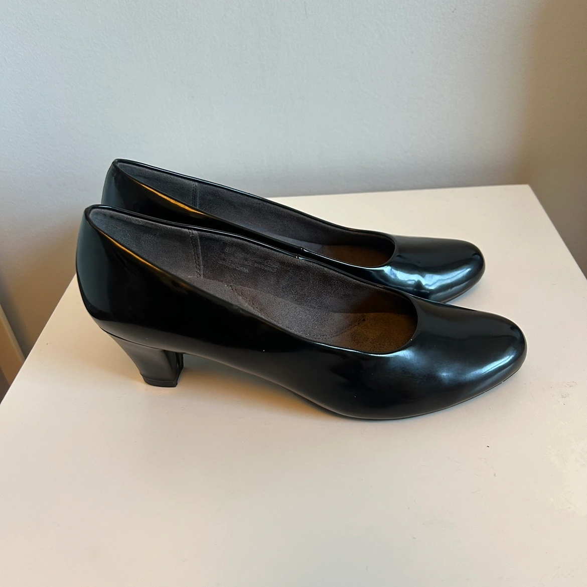 Classic black patent pumps by Aerosoles in size 8 featuring 2.25” block heels and cushioned footbed. Very comfortable!