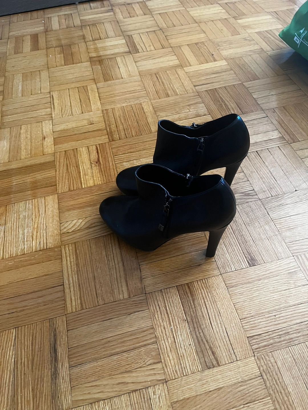 Black ankle boots with side zipper closures and a stiletto heel.