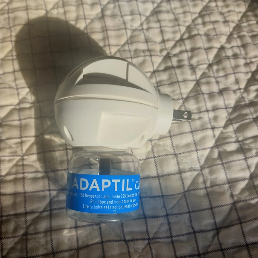 This is a barely used Adaptil Calm Home Diffuser. It is designed to help comfort your dog in stressful situations. The diffuser plugs into a wall outlet.