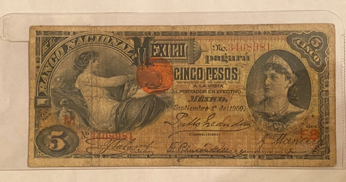 1909 Mexico 5 Pesos Banknote🍀