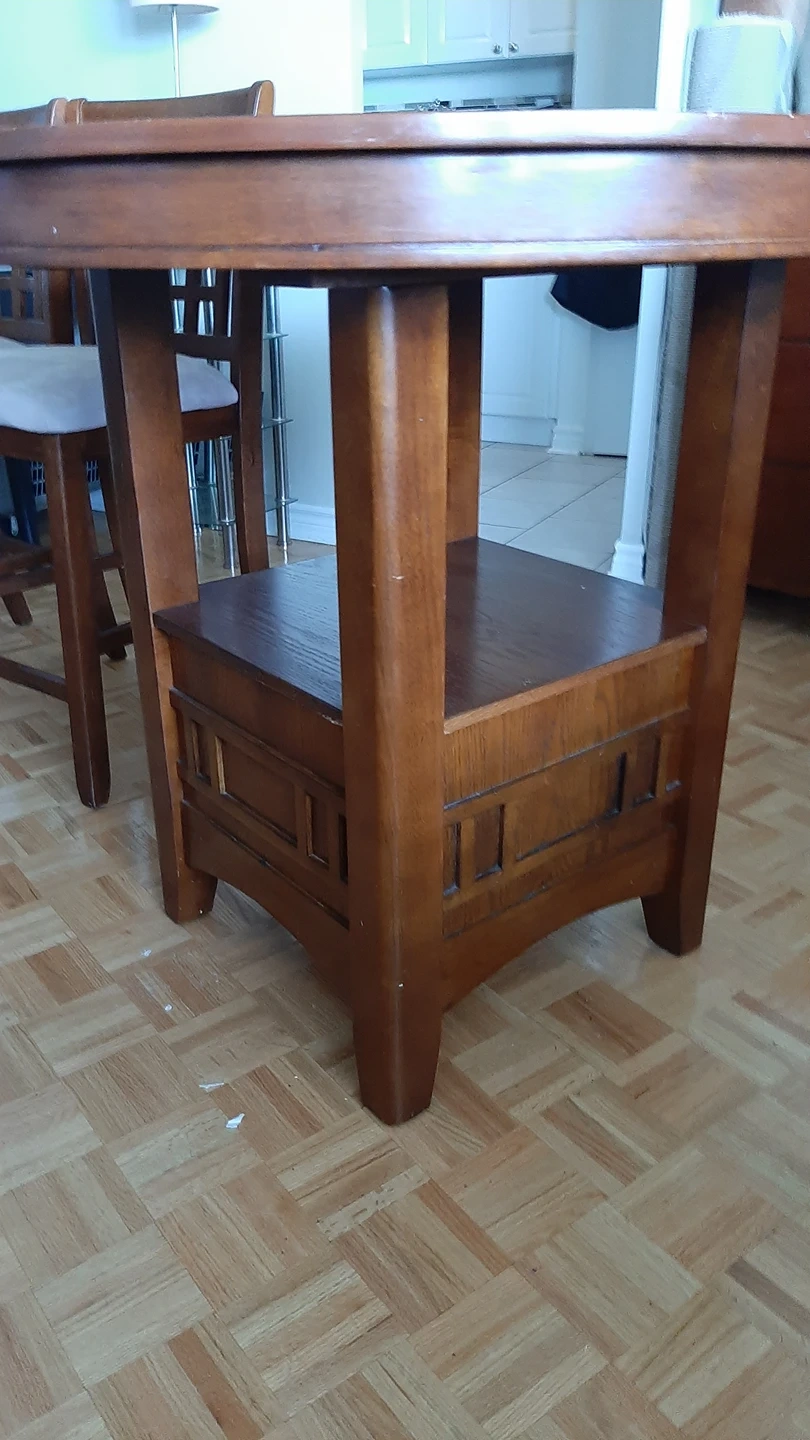 I have pub style table that comes with a middle leaf, This is a beautiful solid wood Pub style table that would look great in any man cave or in your dining room for family meals.