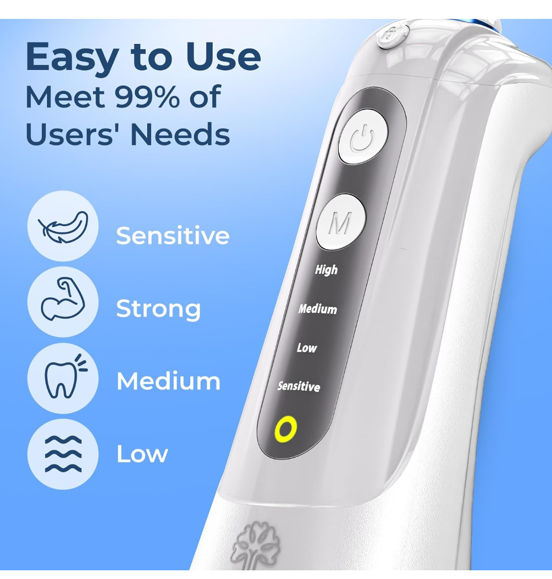 4 Flossing Modes Tailor your oral care routine to your specific needs with the B. WEISS portable water flosser's versatile 4 flossing modes. Whether you require a gentle clean or a more intense massage for your teeth and gums, this water flosser has you covered.