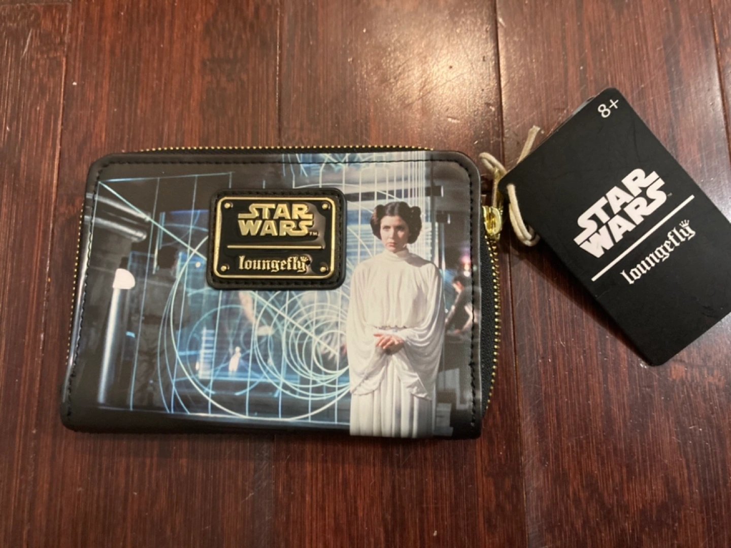 This is a Loungefly Star Wars wallet featuring a print of Princess Leia on one side and Luke Skywalker on the other. It comes with the original tag.