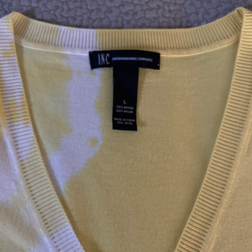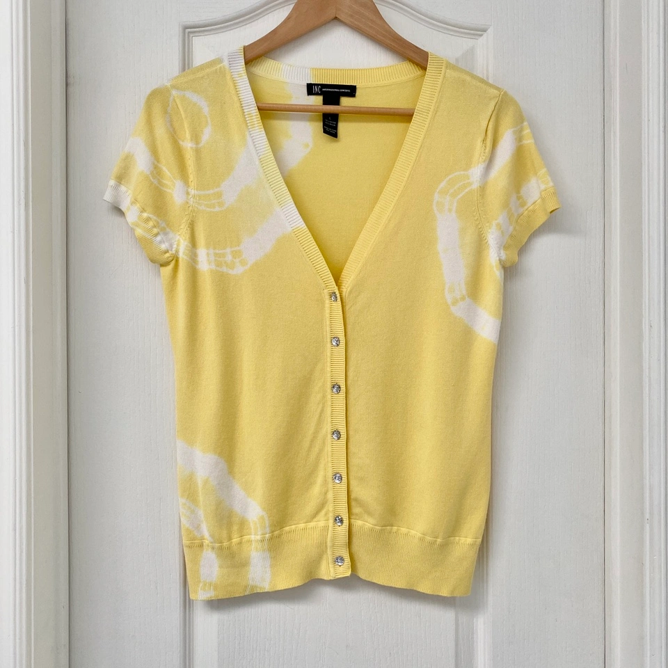247Size: Large Fabric: Rayon Short-sleeved cardigan with a V-neck and button closure. Can be worn open as a cardigan or closed as a sweater/top by itself. This is the softest top you’ll ever wear. Bought it a size too small. Has been washed but never worn. Pick up Pickering - Altona & Sheppard