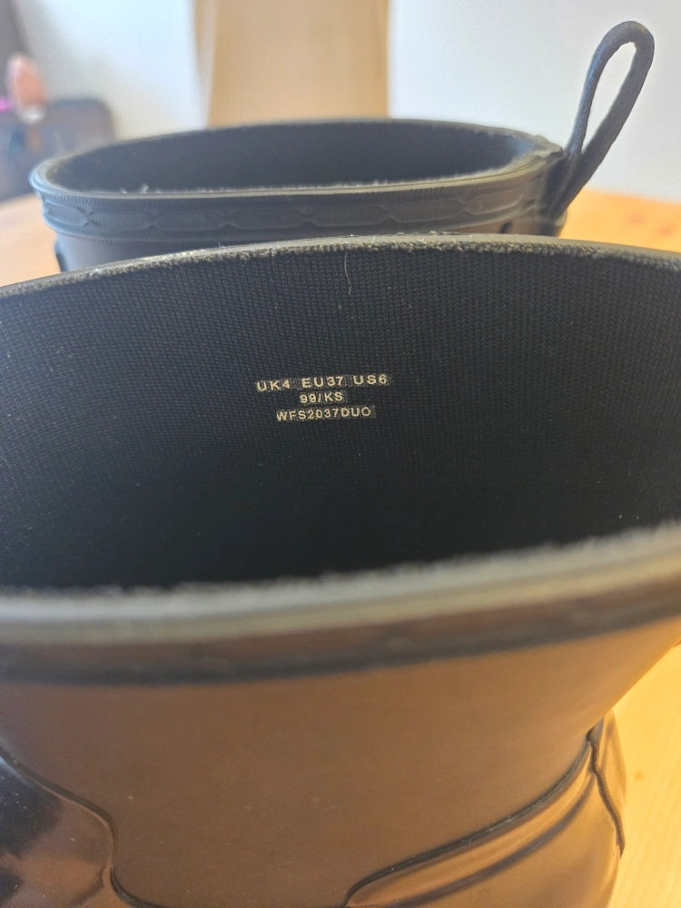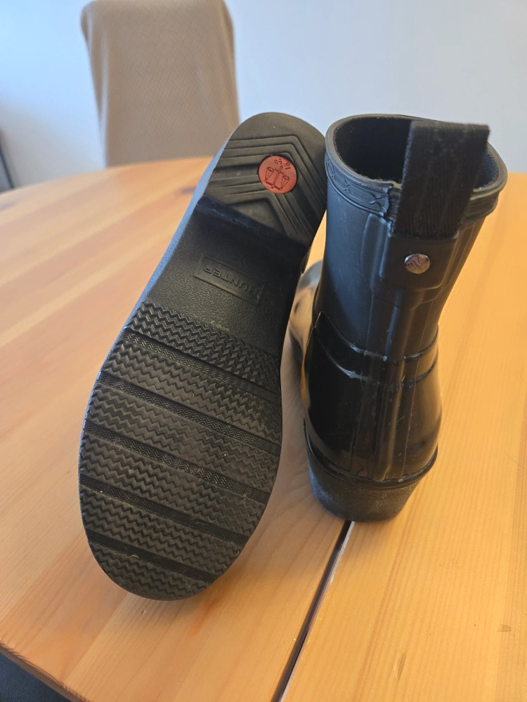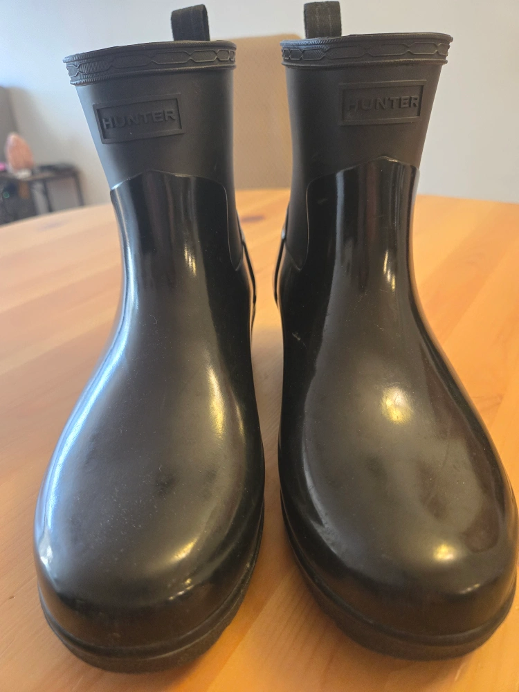 These are stylish and practical rain boots perfect for keeping your feet dry in any weather. They are in great condition and ready to be worn.