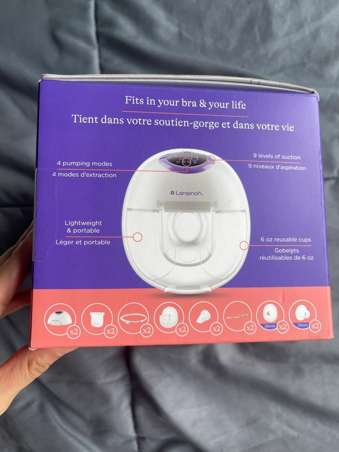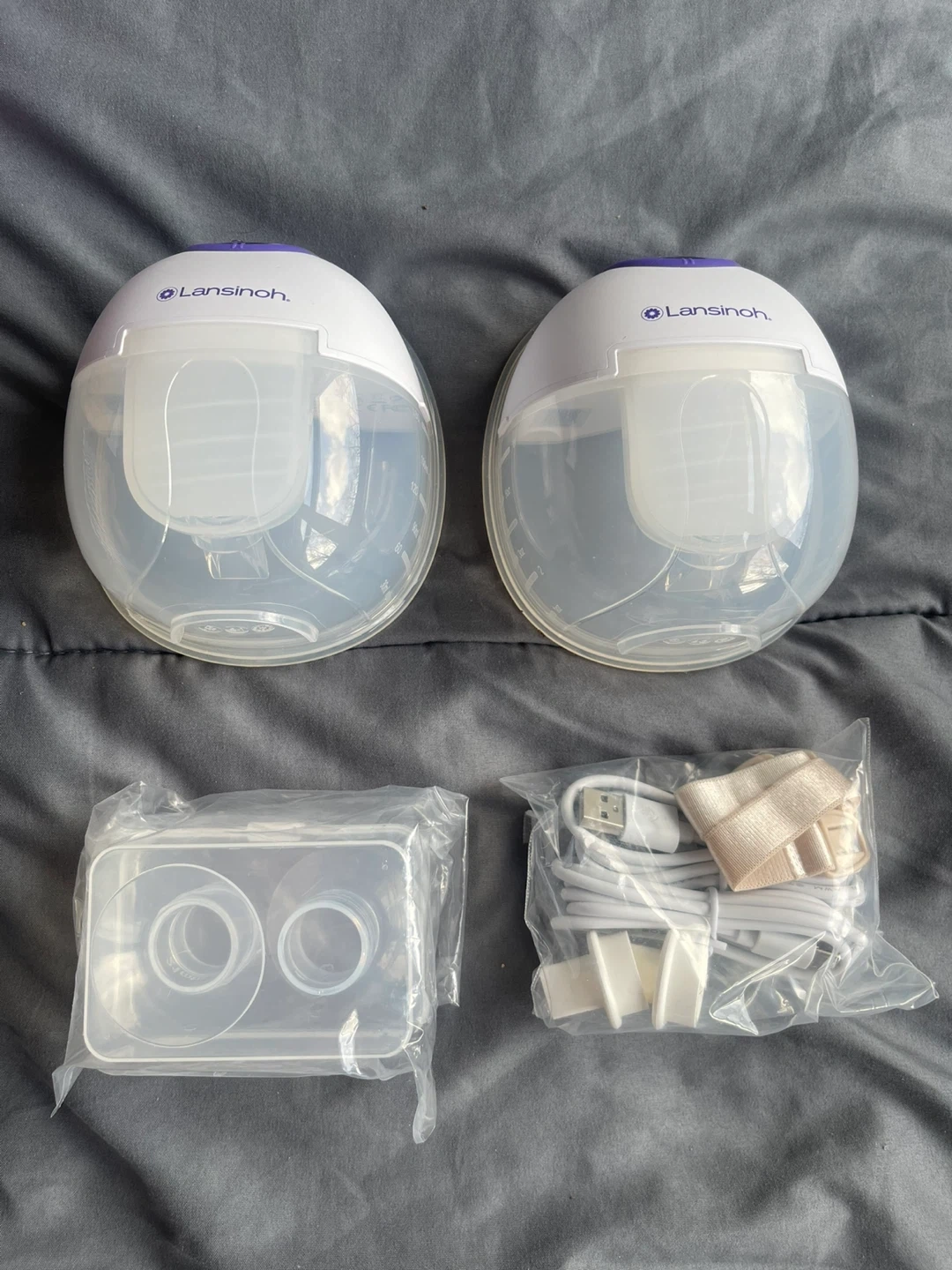 This Lansinoh DiscreetDuo Wearable Pump set includes two pumps and accessories. It features 4 pumping modes and 9 levels of suction. The pumps are lightweight and portable.