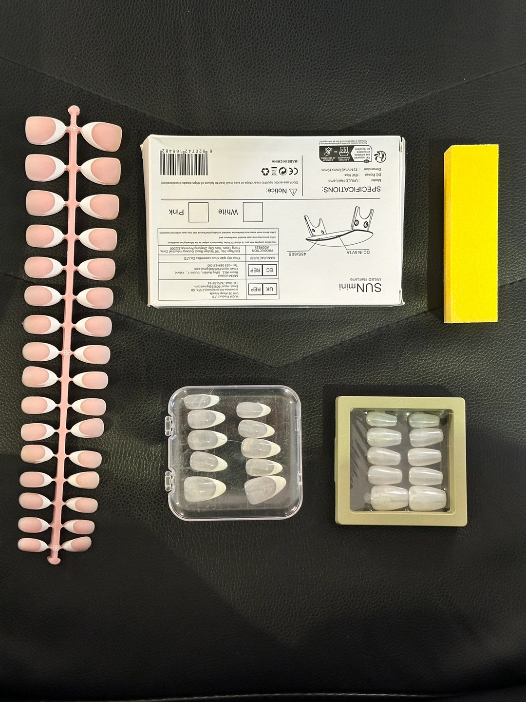 This bundle includes: - 4x sheets pink french manicure nails - nail UV lamp - buffing block - 2x faux nail sets (used once) Everything except the nail sets are brand NEW. All prices are flexible, feel free to make an offer or bundle for discounts! π