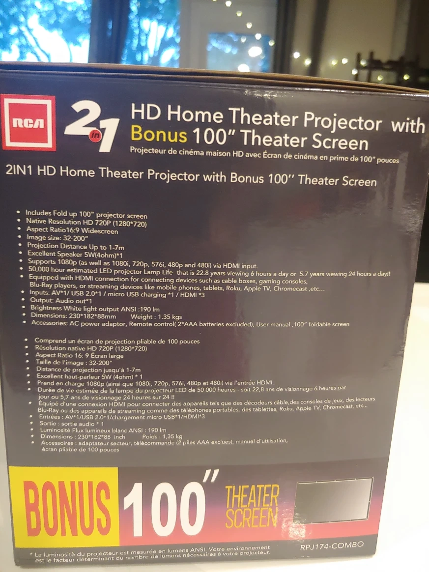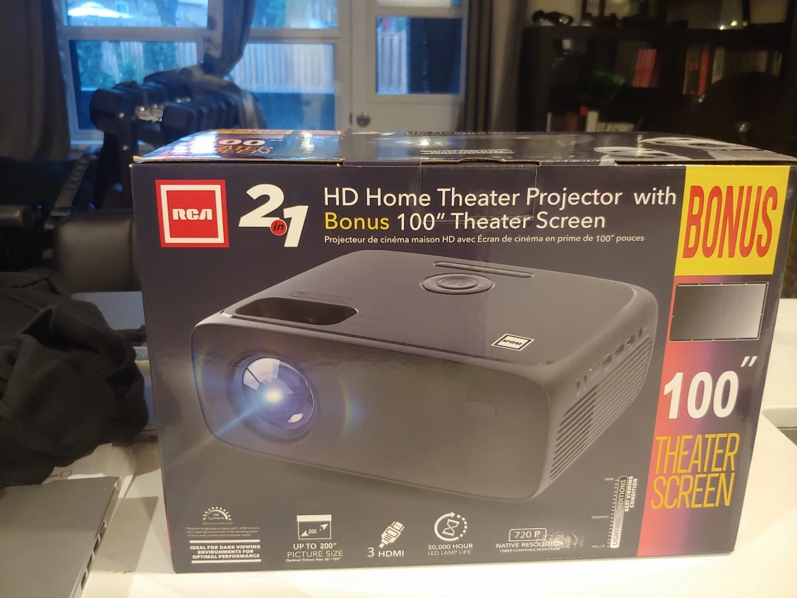 RCA 720P Home Theater Projector With 100" Fold Up Screen