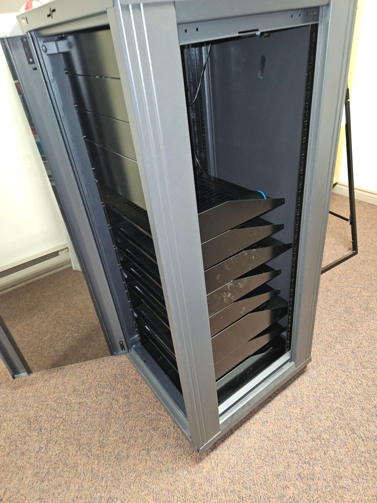 A audio visual cabinet with glass front door, removable sides with all 4 keys & multiple shelves. fan at top and on wheels. beechgrove/lawrence. asking 300 or BO