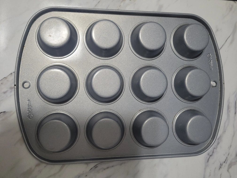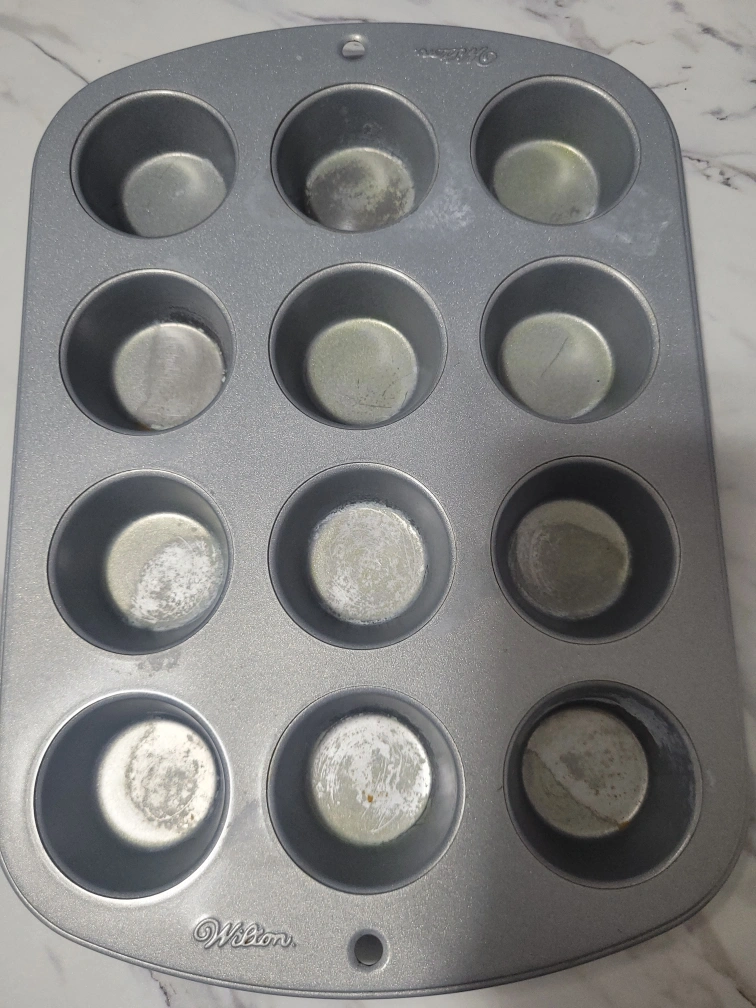 Good condition, just stained on bottom. You can use mini muffin liners from dollar stores.