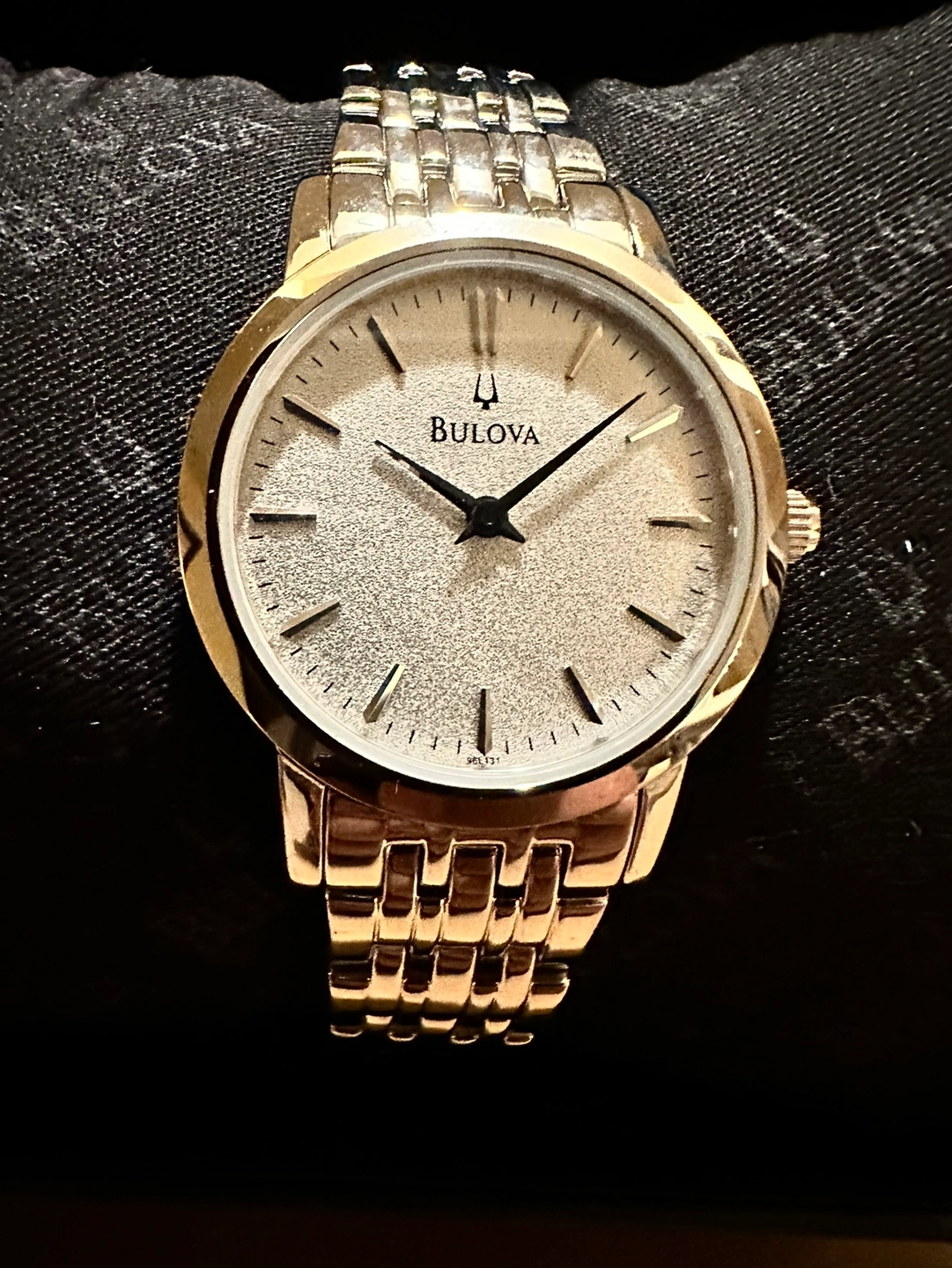 🔆 Bulova women's watch with Gold face and a stainless steel gold band.