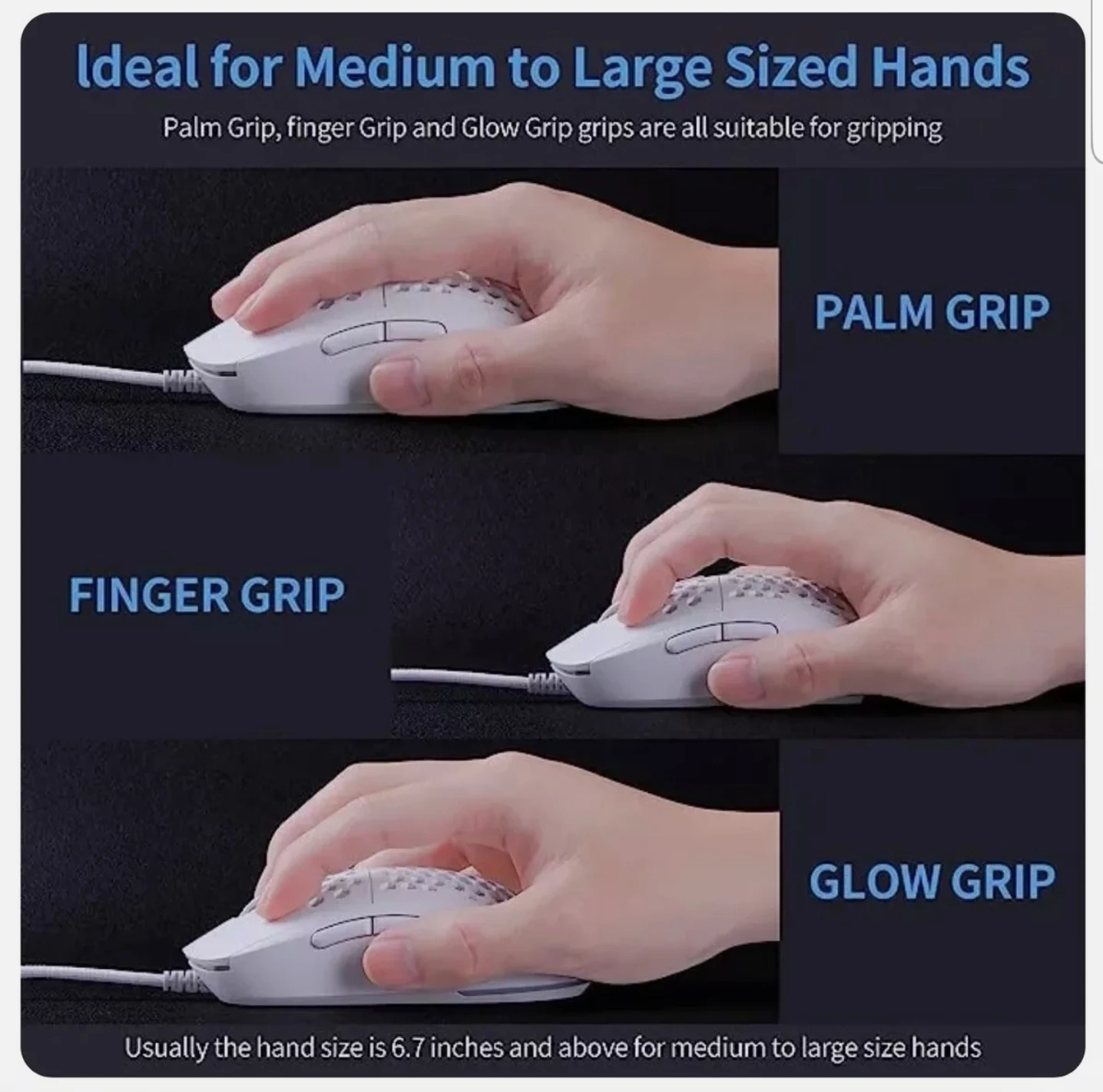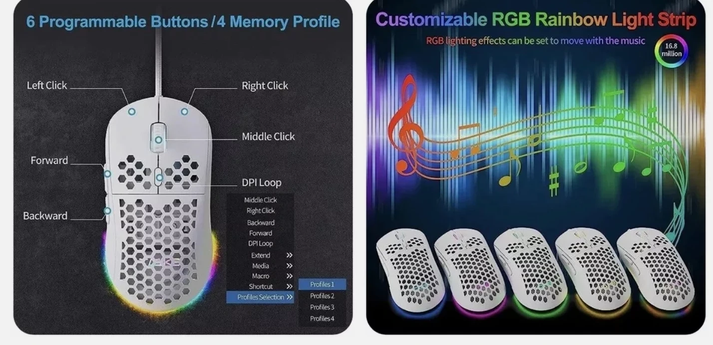 DIERYA M1SE Wired Gaming Mouse, 12800DPI Optical Sensor, 6 Programmable Buttons, Customizable RGB Honeycomb Mouse, Drag-Free Paracord, Ergonomic Design Computer Mouse for Windows PC Gamers, White and black both available
