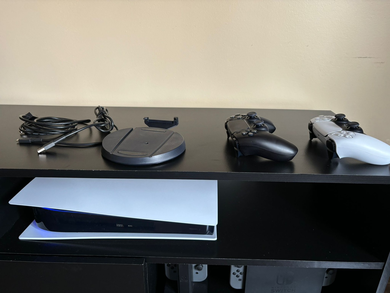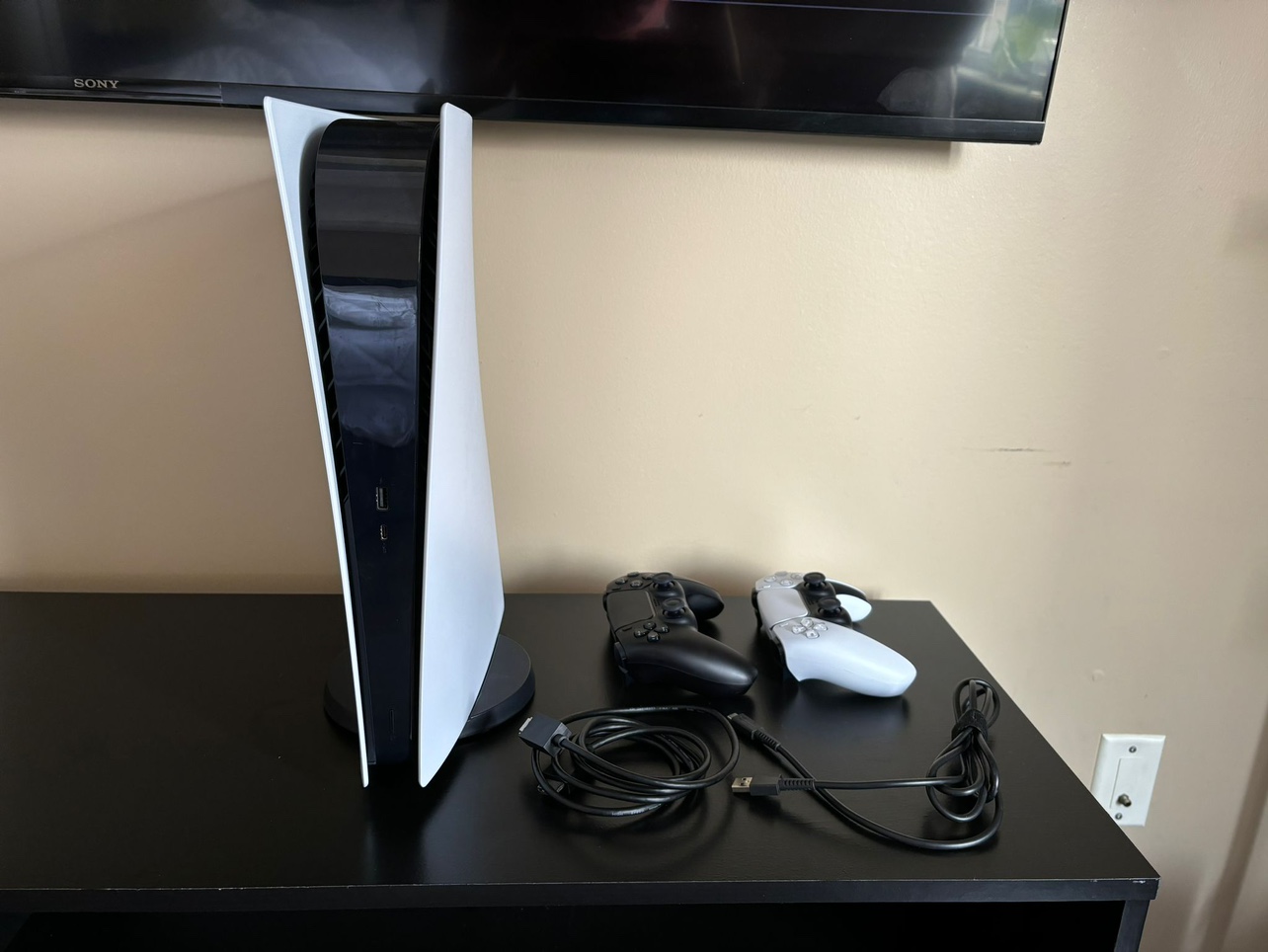 Comes with a PS5 controller, stand, power cord, and a 1TB NVMe SSD. Also included is a second PS5 controller. The console has been taken care of and looks good. Please ask questions if you have them.