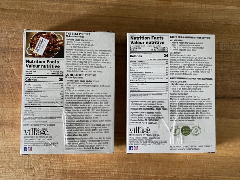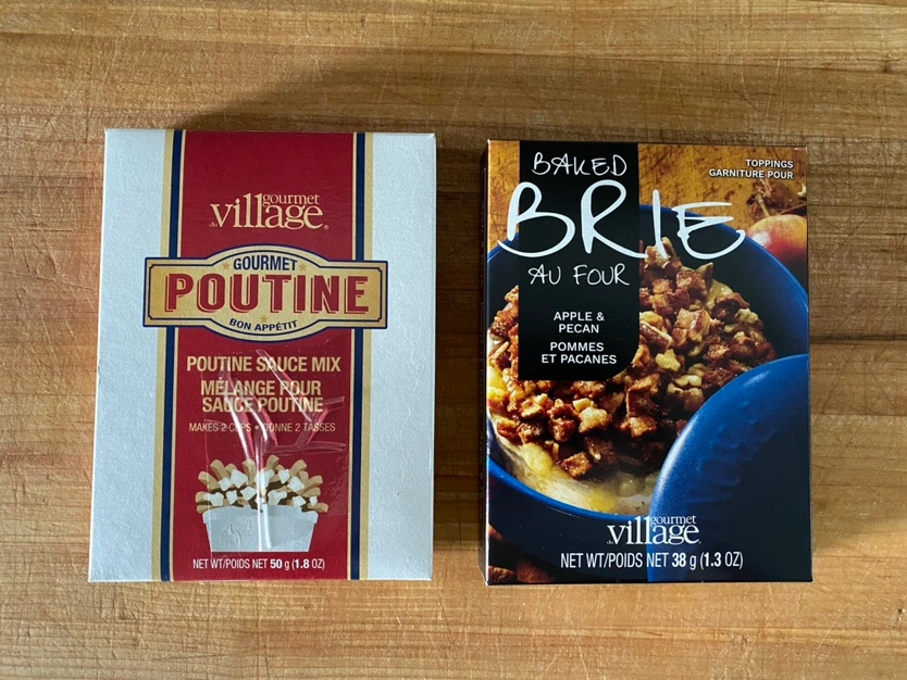This is a box of Gourmet Village Poutine mix and a box of Gourmet Village Baked Brie au Four.