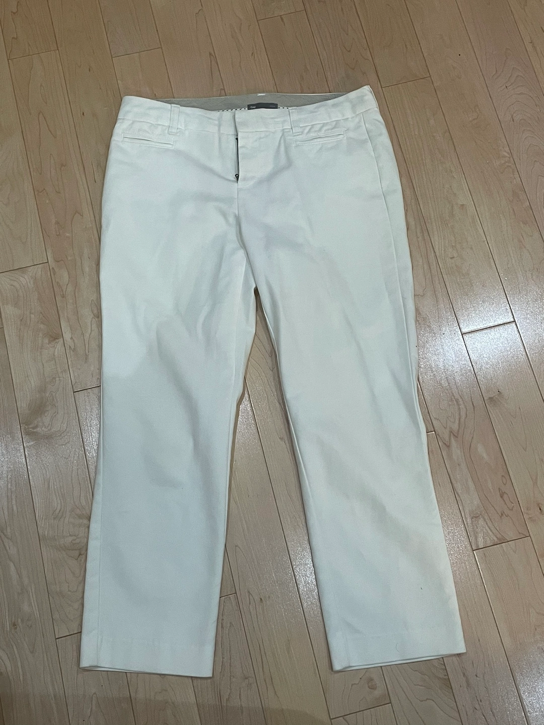 White pants from Gap. Size 6, stretch fabric. These pants are a great addition to any wardrobe and are super flattering on!