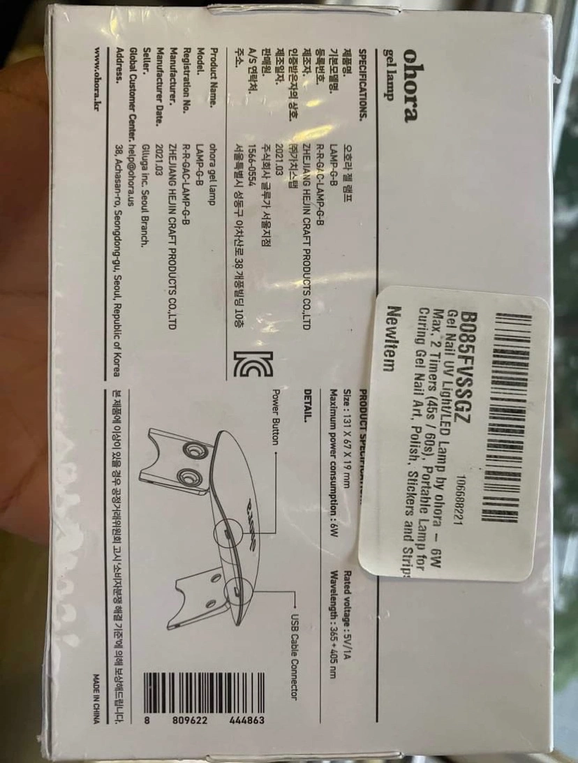 Ohora Gel Lamp, includes USB cable. New, unused, and in original packaging.