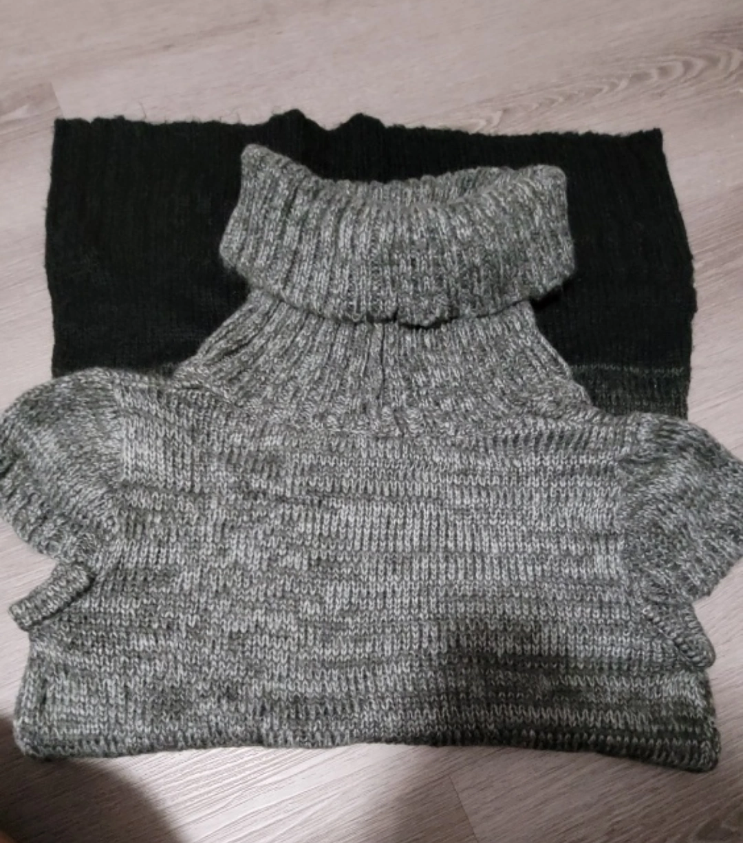This is a grey knitted turtleneck sweater dress with short sleeves. It is a classic and comfortable piece that is perfect for office or party. The sweater is in good condition.
