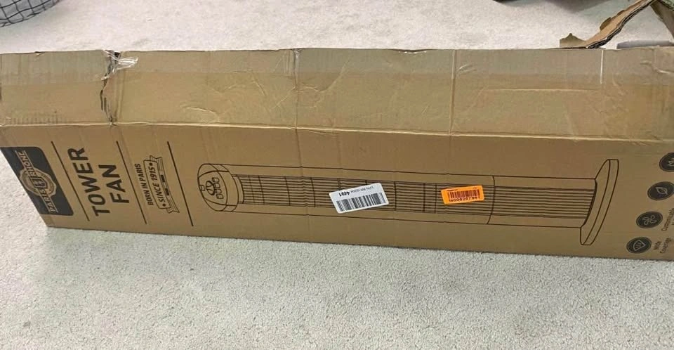 Selling a brand new Paris Rhone Tower Fan (Model PE-TF032). It features a sleek black design, oscillation for wide cooling, adjustable speeds (0, 1, 2, 3), and a built-in timer (up to 120 mins). The controls are easy to use on top. It's in excellent, like-new condition and comes with the original box and manual. Perfect for keeping your home or office cool. Pick up in Courtice. Please check my other listings!