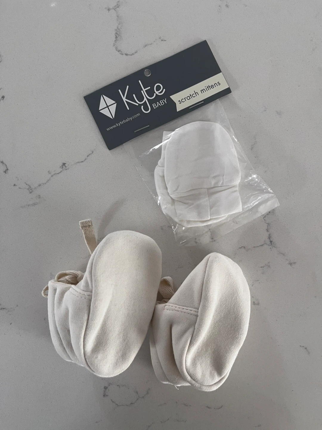 Set includes Kyte Baby scratch mittens (New, unopened) and Quincy Mae baby booties. Booties are size 0-3M. Mittens are made of 97% Rayon of Bamboo and 3% Spandex. Booties are made of cotton. Perfect for keeping little ones cozy and protected!