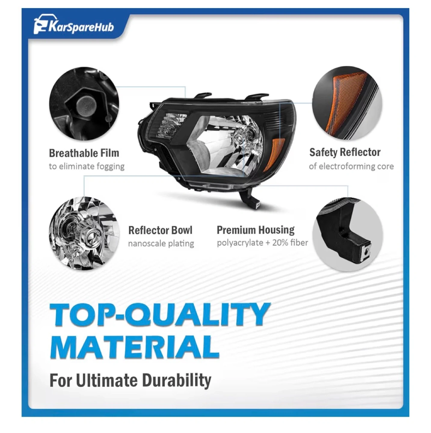 KarSpareHub Black Headlights for Toyota Tacoma 2005-2011
