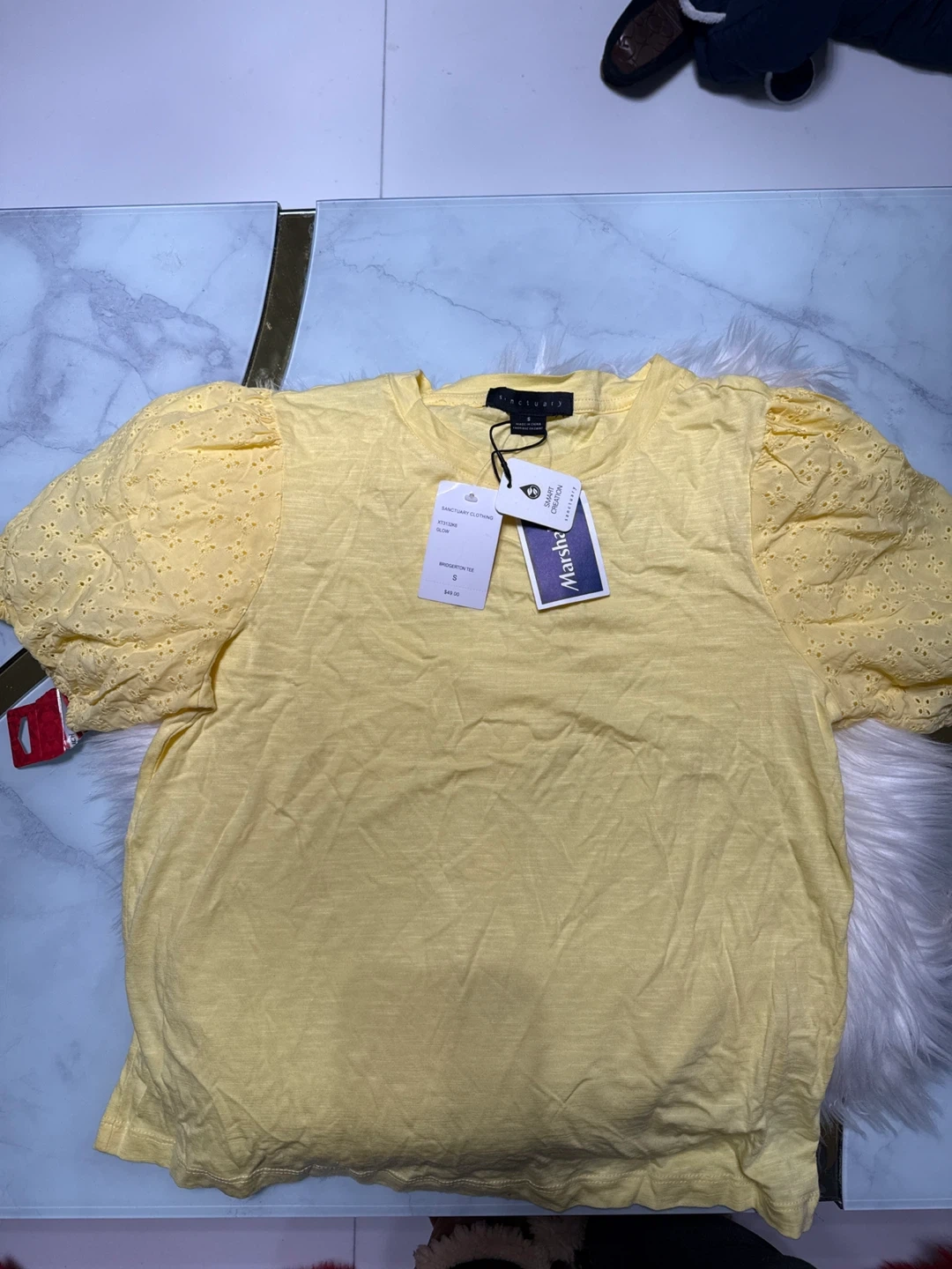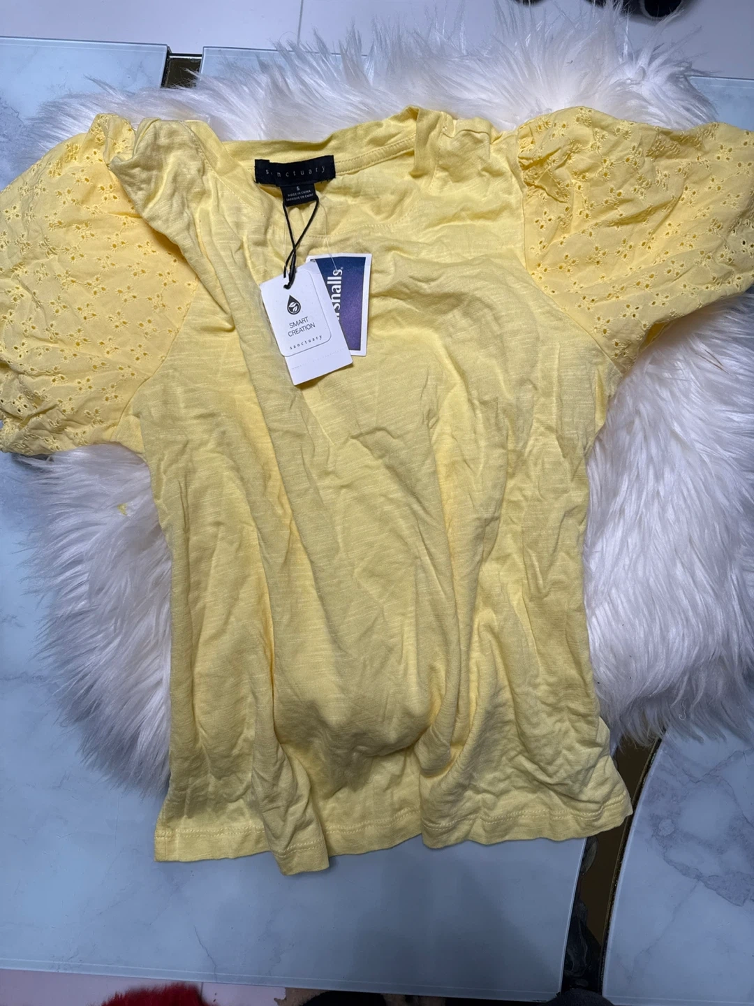 This is a new Sanctuary Bridgeton Tee in a lovely yellow color! It's a size small and originally cost $49.00. This tee is perfect for adding a pop of color to your wardrobe