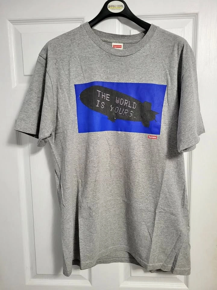 Used but in great condition. Part of the Scarface "The World Is Yours" collab, size Large. Perfect for streetwear or collectors.