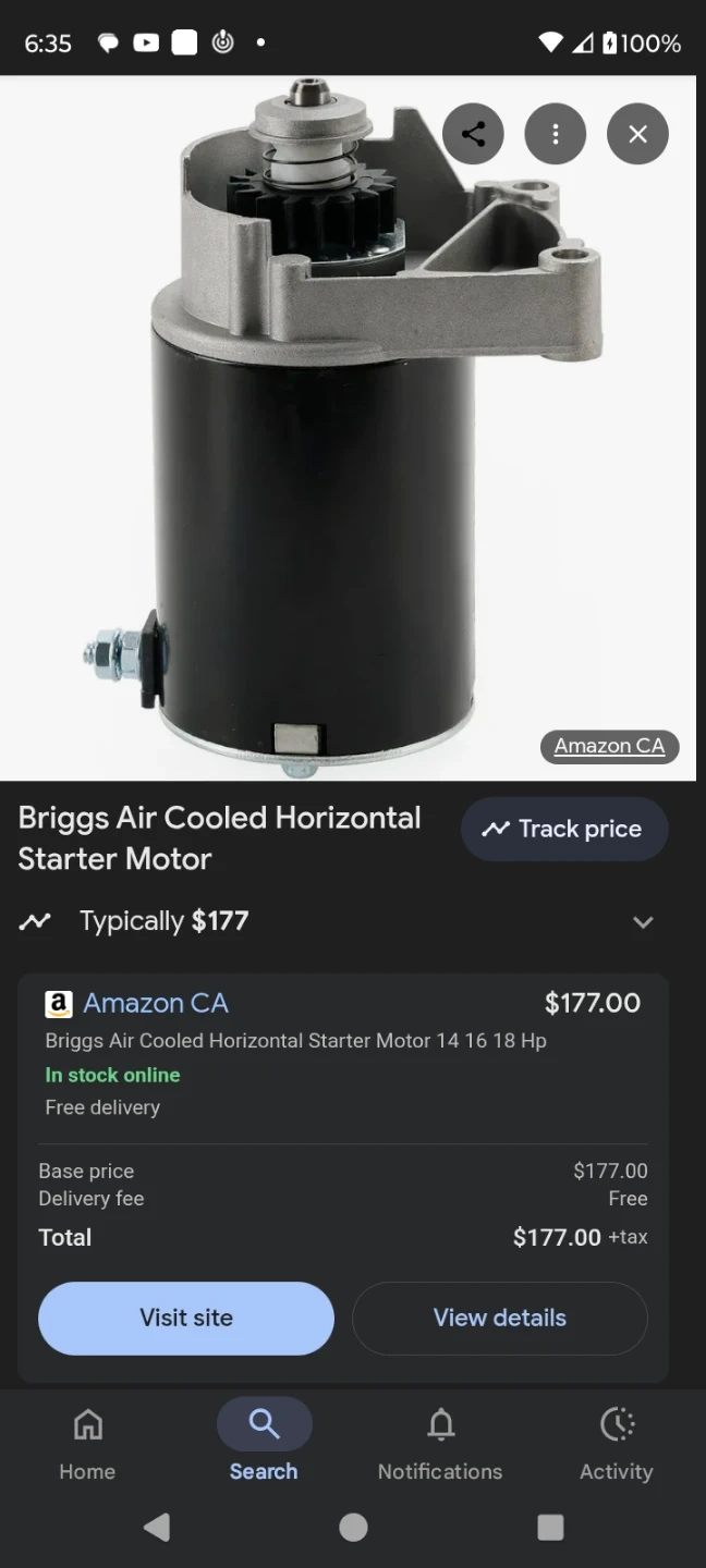 This is a Briggs & Stratton air cooled horizontal starter motor. It's designed for 14, 16, and 18 HP engines. This part is essential for starting your equipment.