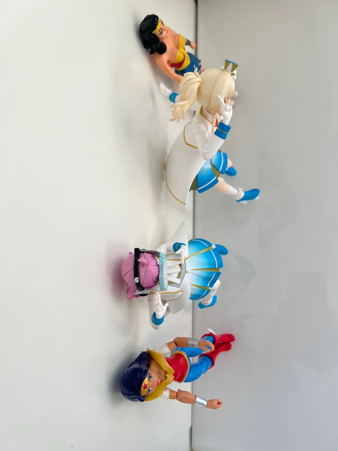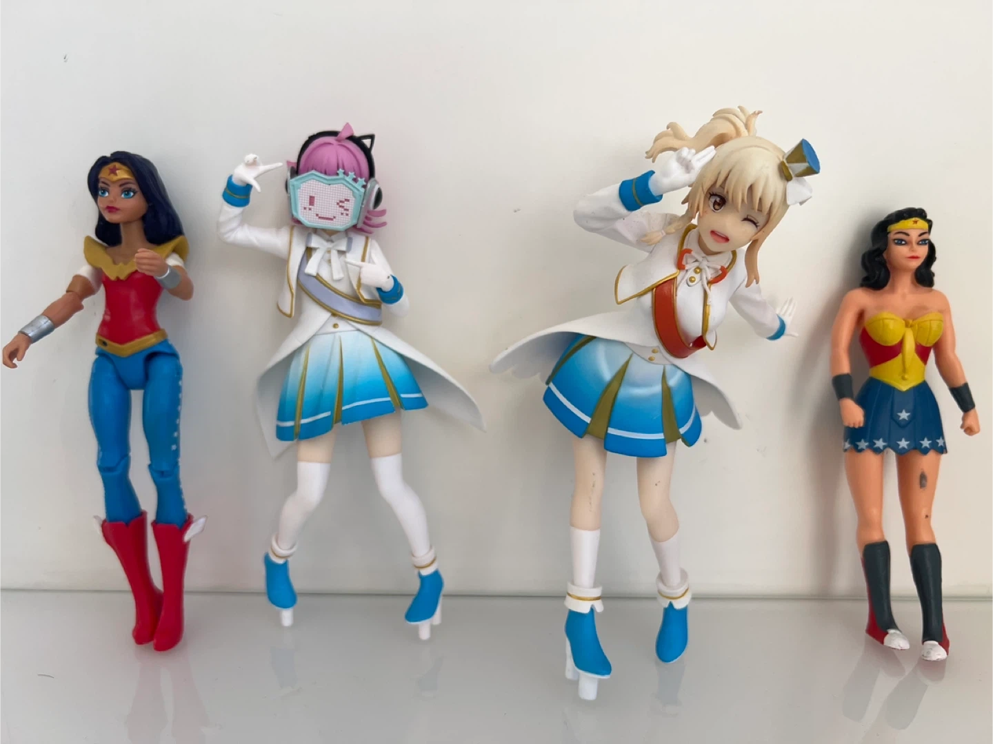 This lot includes two Wonder Woman action figures and two anime-style figures. They're all in good condition and ready for display. Perfect for any collector!