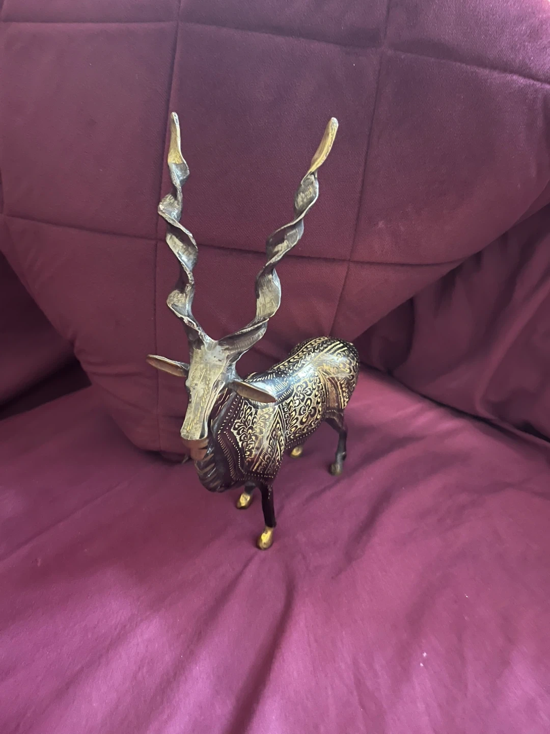 Handcrafted Antelope Statue with Long Spiral Horns -