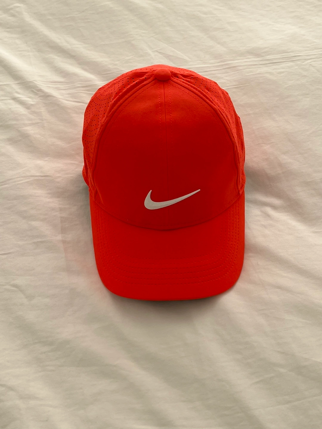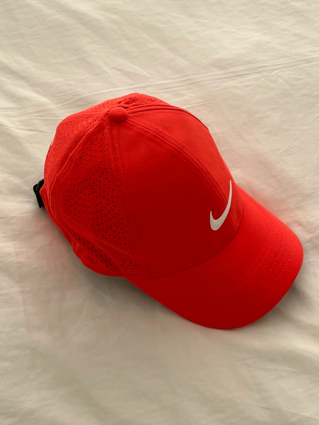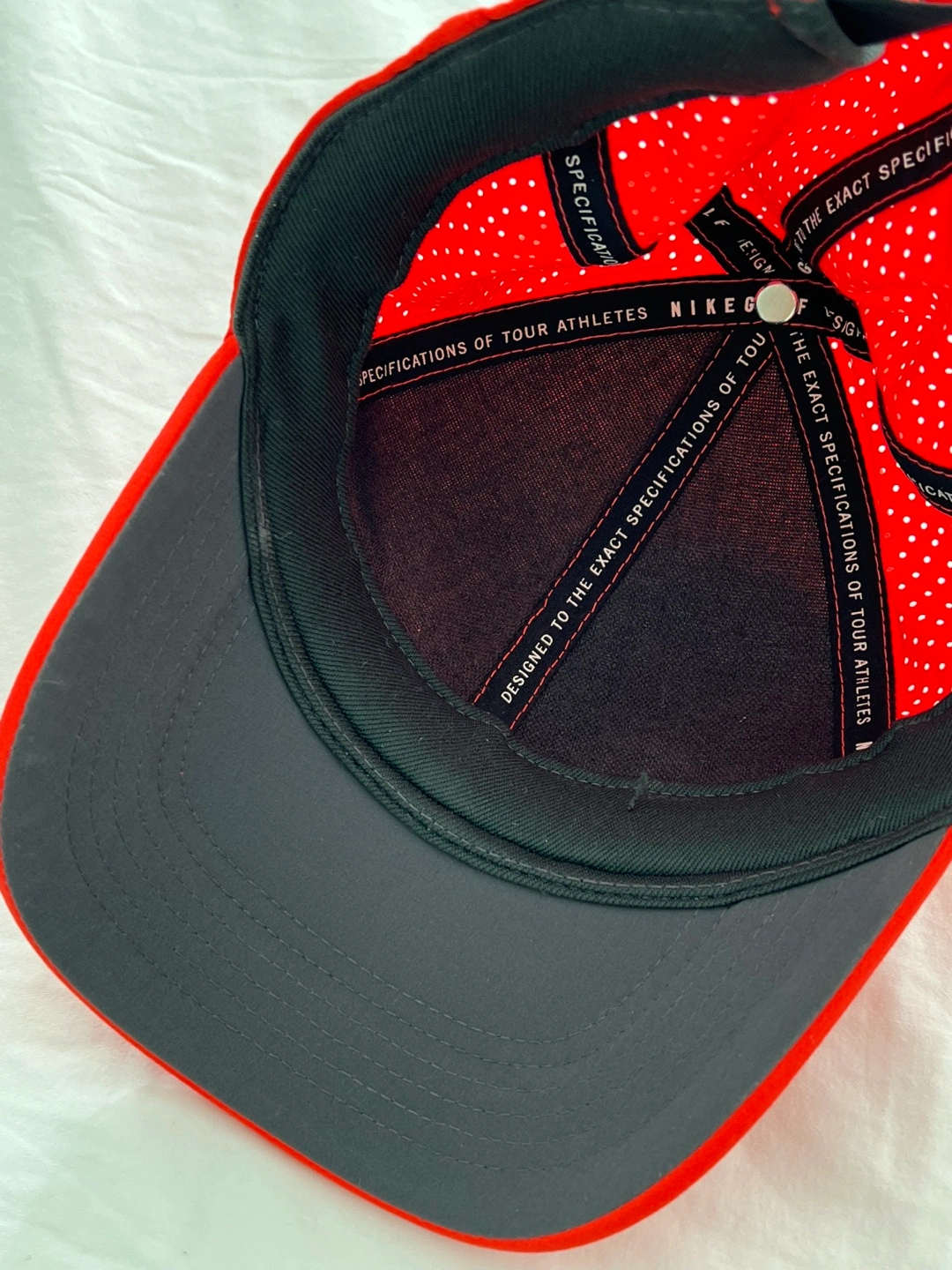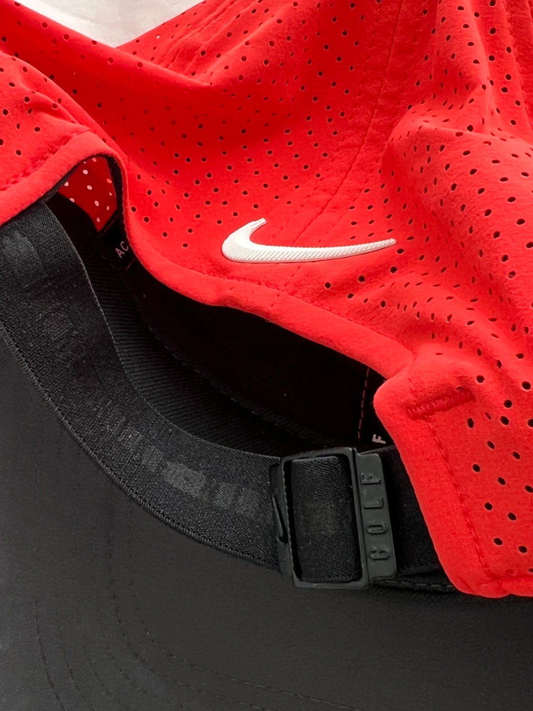 Red Nike golf cap. Features Dri-FIT technology. Adjustable closure. Perforated for breathability. Excellent condition.