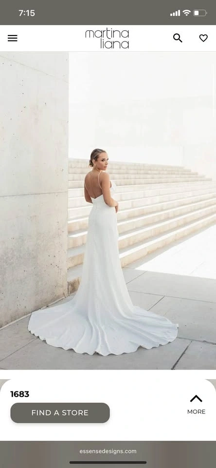Martina Liana 1683 Wedding Dress, originally size 12, altered to fit approximately a size 8. Originally purchased for around $3000. Includes custom, removable off-the-shoulder sleeves. The original straps are still intact, offering versatility in how the dress can be worn. Worn once and professionally dry cleaned. Open to try-ons. For reference, my measurements at the time were: Bust - 33.5", Waist - 27", Hips - 38.5". Purchased at Bridal Boutique in Saskatoon.
