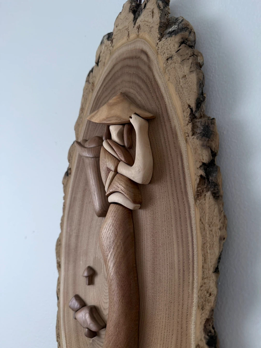 Wooden Wall Art - Woman with Straw Hat and Mushrooms