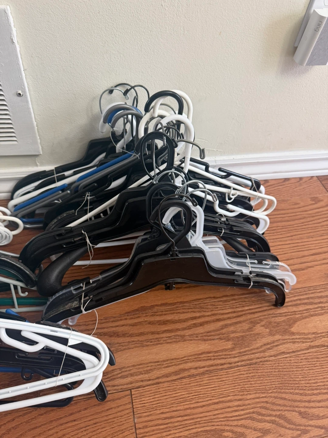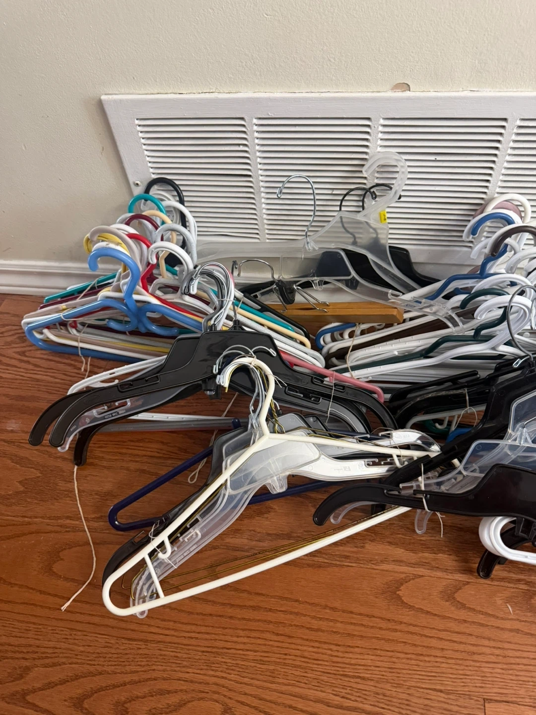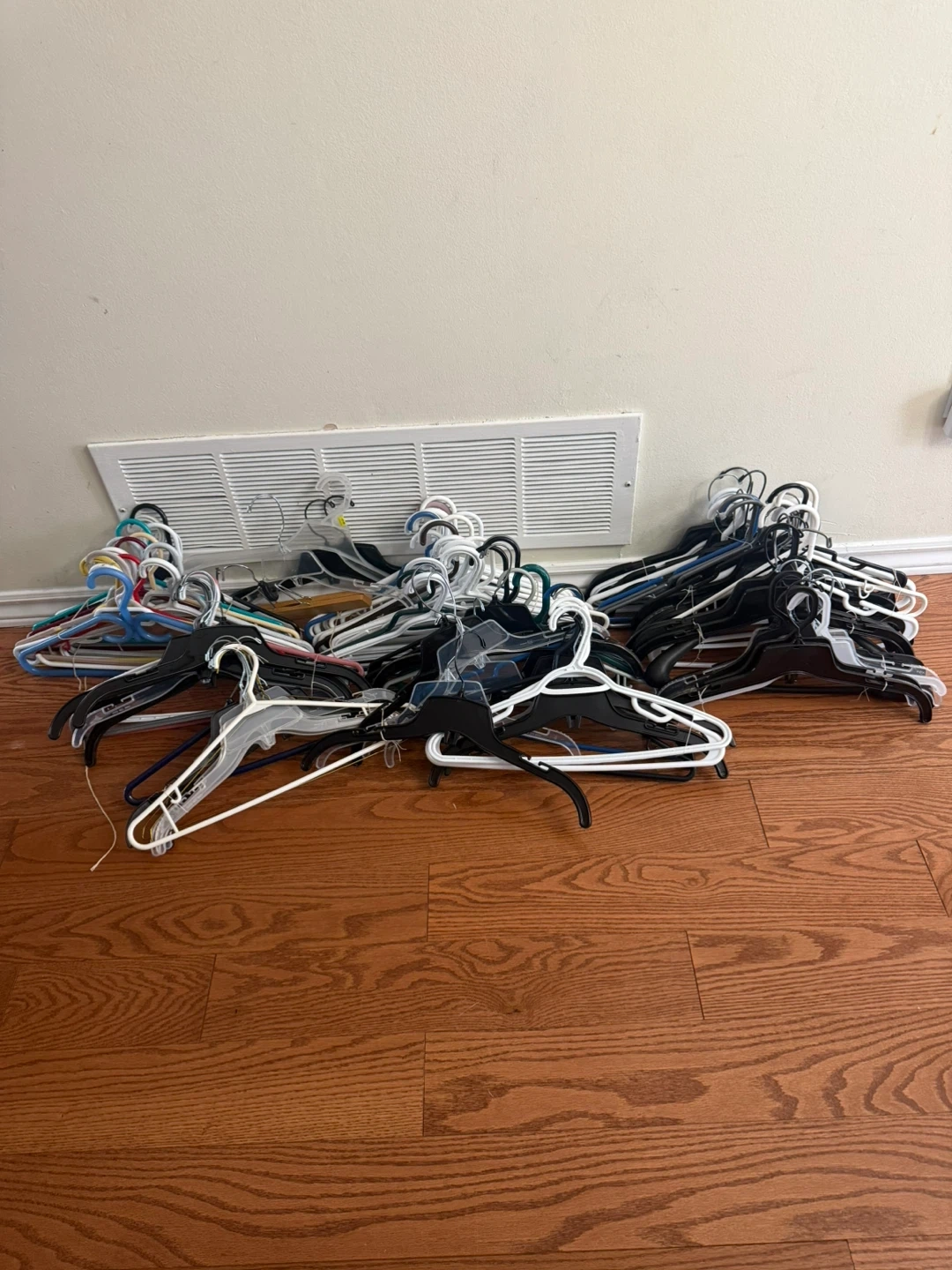 Features 112 pieces of clothing hangers