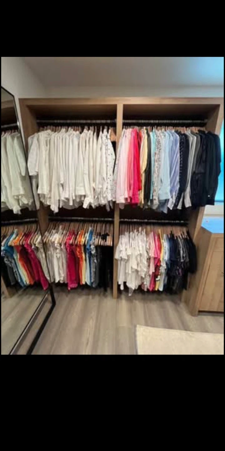 Lots of clothes hangers to hang all of your clothes! Its more organized hanged!