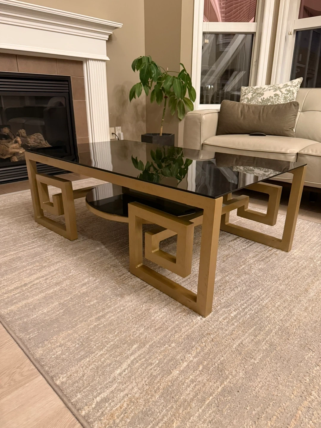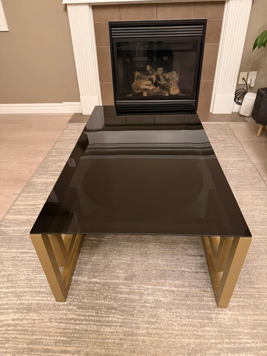 Modern Coffee Table with Black Glass Top and Gold Frame