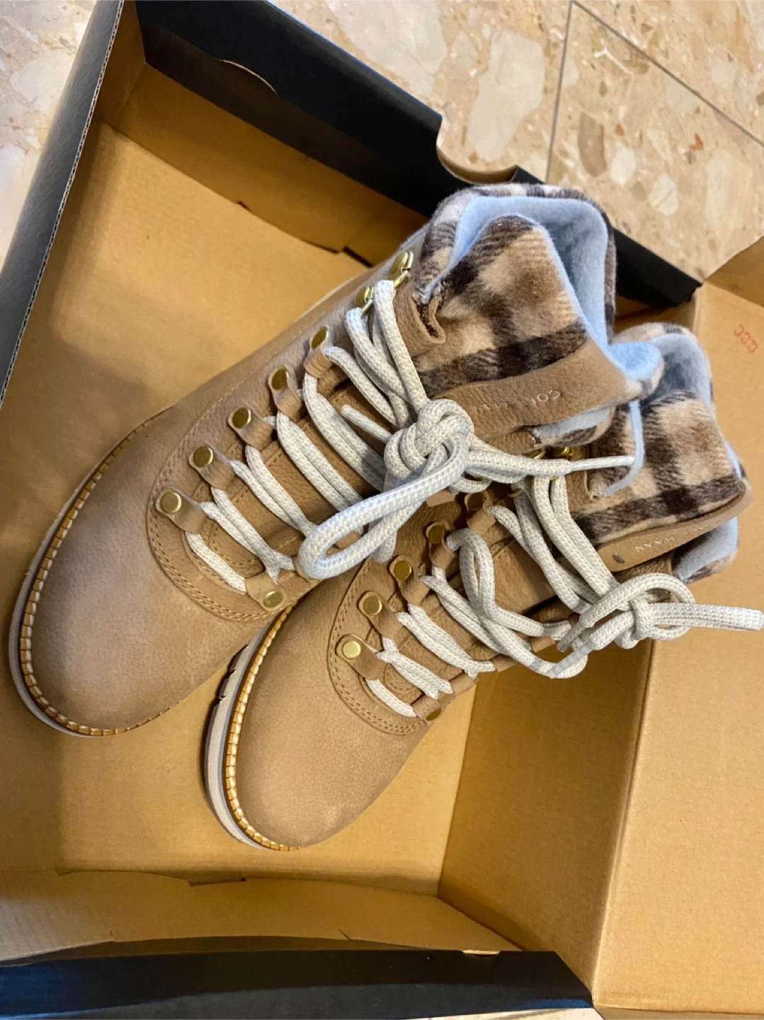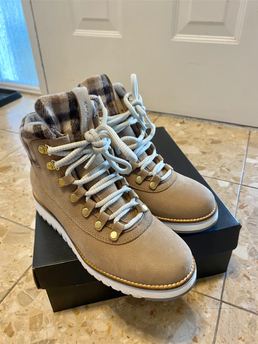 These Cole Haan snow boots are in pristine condition! Unfortunately the size doesn’t fit me but they have only been worn probably once! They are so cozy, fashionable, and waterproof and perfect for the rain and snow! They go well with dresses or jeans.